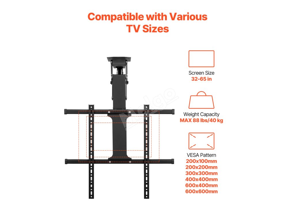 Motorický stropný držiak pre 32–65 inch tv, vesa 24×24 in, max 88 lbs