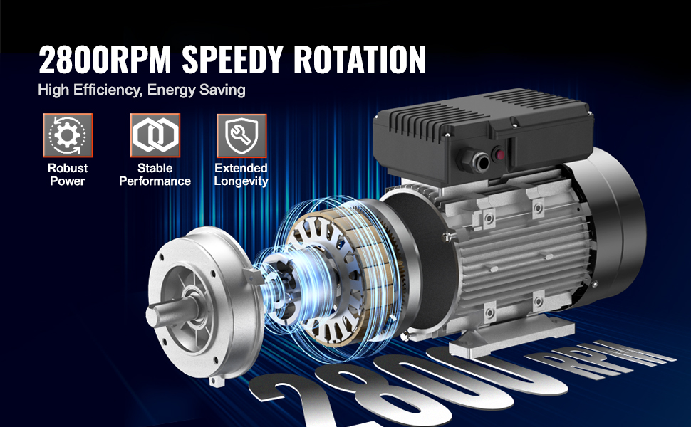 Elektromotor VEVOR s výkonom 1,1 kW sa môže pochváliť vysokými otáčkami 2800 RPM, ktoré poskytujú silný výkon v rôznych aplikáciách. Jeho robustný výkon zabezpečuje efektívnu prevádzku, vďaka čomu je ideálny pre poľnohospodárske stroje a priemyselné zariadenia, pričom šetrí energiu a zvyšuje produktivitu.