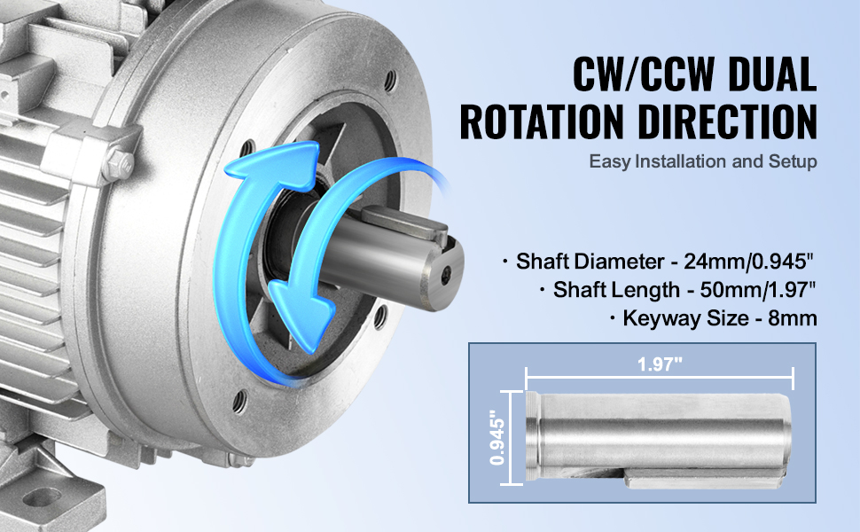 Vďaka dvojitému smeru otáčania CW/CCW sa tento motor vzduchového kompresora ľahko inštaluje a je užívateľsky prívetivý. S priemerom hriadeľa 24 mm, dĺžkou hriadeľa 50 mm a drážkou s kľúčom 8 mm sa ľahko pripája k rôznym zariadeniam a ponúka veľkú všestrannosť pre rôzne aplikácie.