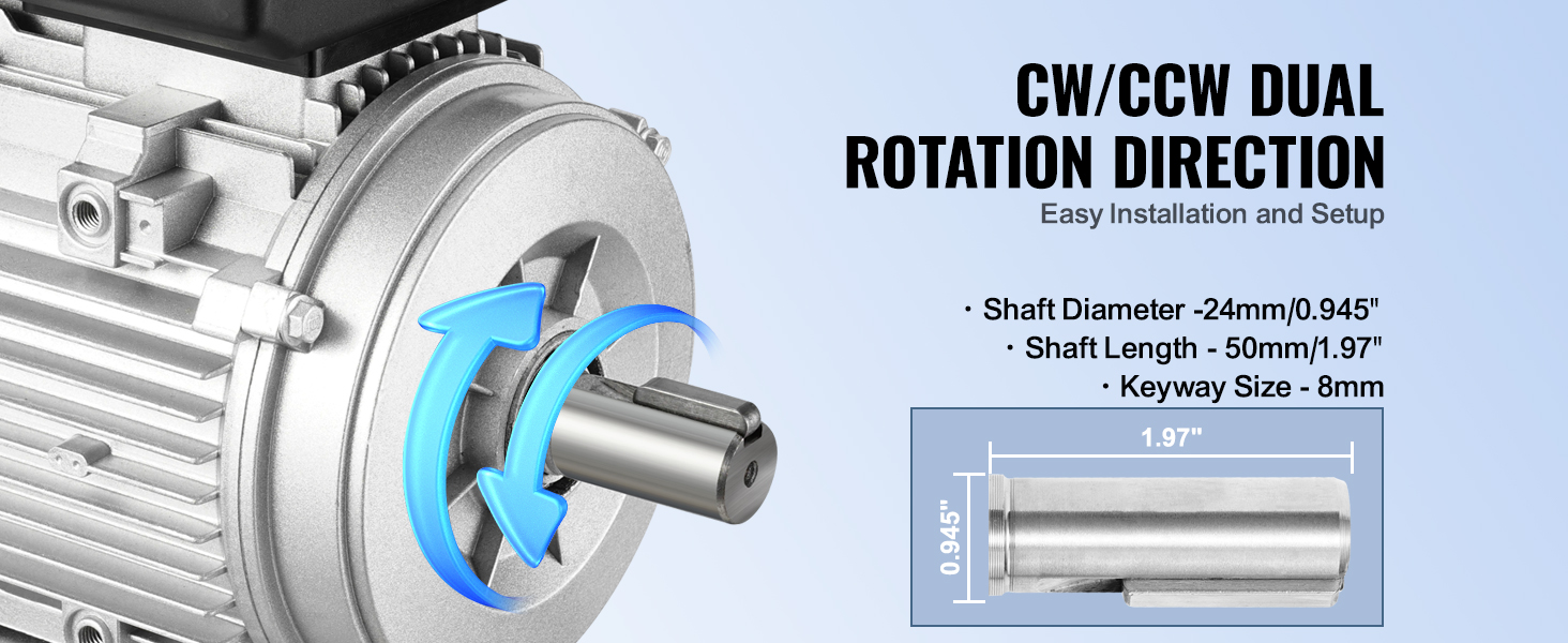 Vďaka dvojitému smeru otáčania CW/CCW sa tento motor vzduchového kompresora ľahko inštaluje a je užívateľsky prívetivý. S priemerom hriadeľa 24 mm, dĺžkou hriadeľa 50 mm a drážkou s kľúčom 8 mm sa ľahko pripája k rôznym zariadeniam a ponúka veľkú všestrannosť pre rôzne aplikácie.