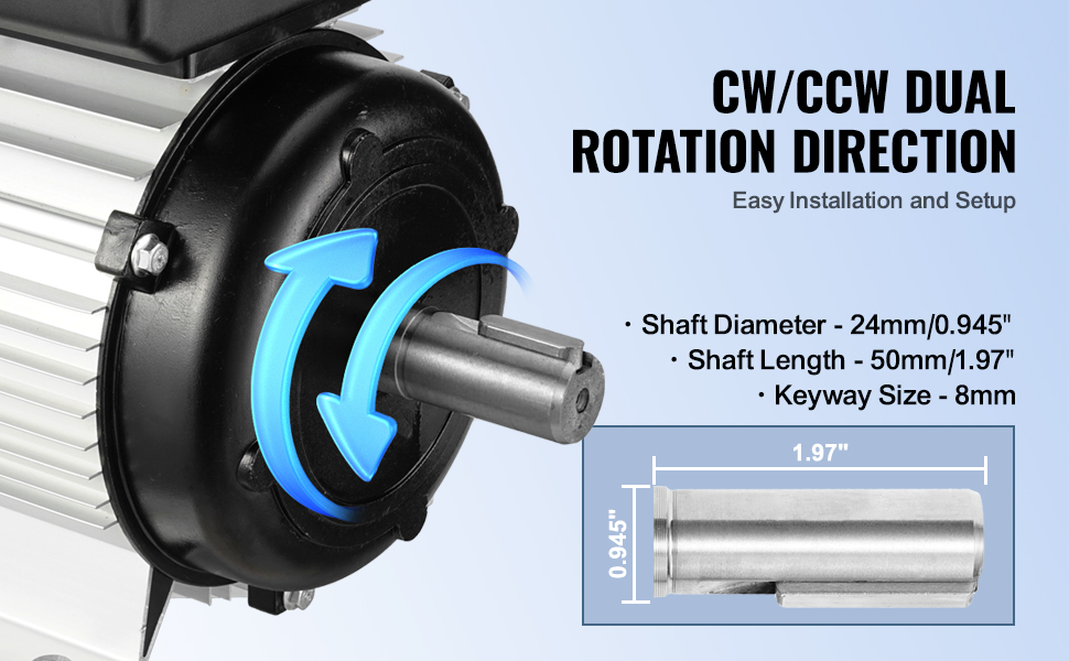 Vďaka dvojitému smeru otáčania CW/CCW sa tento motor vzduchového kompresora ľahko inštaluje a je užívateľsky prívetivý. S priemerom hriadeľa 24 mm, dĺžkou hriadeľa 50 mm a drážkou s kľúčom 8 mm sa ľahko pripája k rôznym zariadeniam a ponúka veľkú všestrannosť pre rôzne aplikácie.