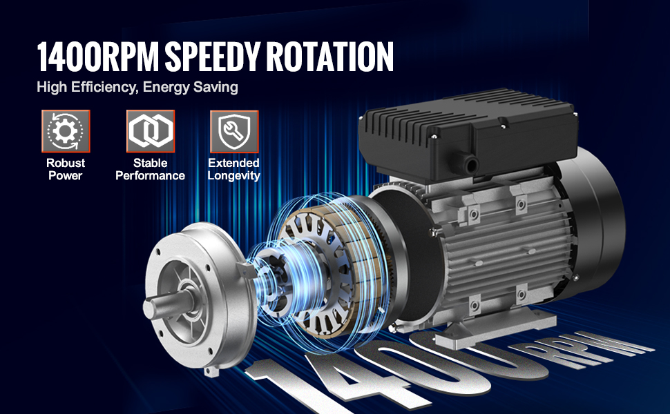 Elektromotor VEVOR s výkonom 0,55 kW sa môže pochváliť vysokými otáčkami 1400 RPM, ktoré poskytujú silný výkon v rôznych aplikáciách. Jeho robustný výkon zabezpečuje efektívnu prevádzku, vďaka čomu je ideálny pre poľnohospodárske stroje a priemyselné zariadenia, pričom šetrí energiu a zvyšuje produktivitu.