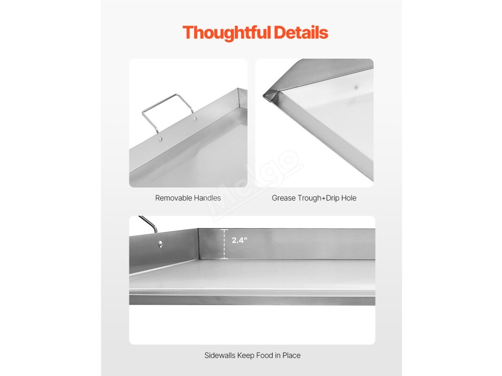 Grilovacia platňa z nehrdzavejúcej ocele 36×22 inch, rovná, s držadlom