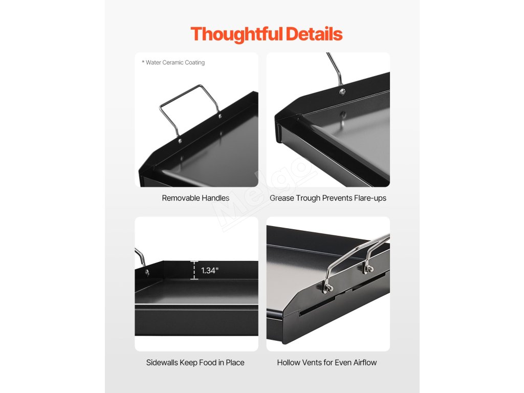 Otázka 1: Je táto panvica na pečenie kompatibilná s väčšinou varných dosiek? A1: Áno! Naša panvica na pečenie je navrhnutá tak, aby bola kompatibilná s väčšinou sporákov vrátane elektrických, plynových. Skvele funguje aj na vonkajších griloch alebo kempingových varičoch, takže je univerzálna na varenie v interiéri aj exteriéri. O2: Dá sa panvica na grilovanie ľahko čistiť? A2: Áno! Panvica na grilovanie je vybavená nepriľnavým povrchom, vďaka ktorému je čistenie hračkou. Po použití ju jednoducho utrite mäkkou špongiou alebo handričkou. V prípade silnejších škvŕn ju na niekoľko minút namočte do teplej mydlovej vody a väčšina z nich sa odstráni s minimálnym úsilím. Otázka 3: Mám plynový gril so 6 horákmi. Nejaké odporúčania na zabránenie deformácii? A3: Rošt je špeciálne skonštruovaný tak, aby zabránil deformácii. Na spodnej strane sa nachádzajú spevňujúce krížové diely. Rošt neumiestňujte na teplotu vyššiu ako 500℉. Tipy: Pred pridaním potravín nechajte grilovací rošt pomaly zahriať na miernu teplotu.