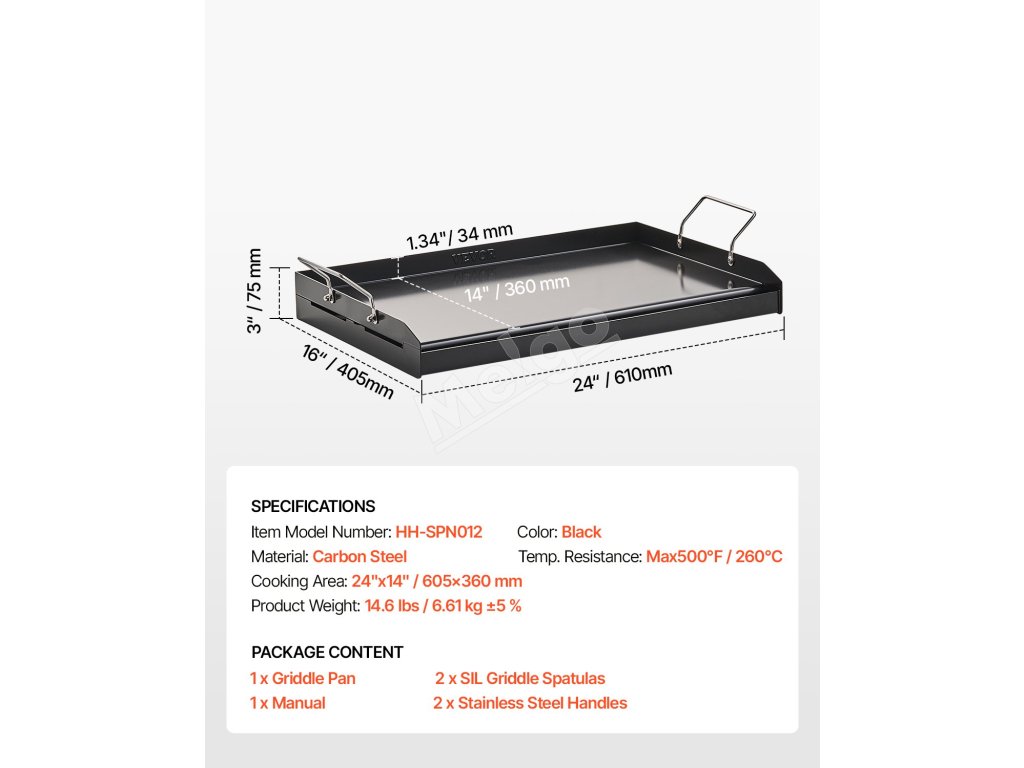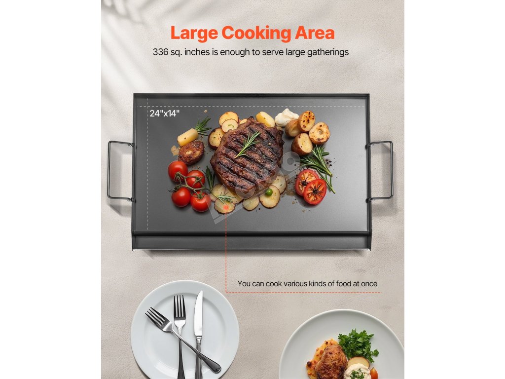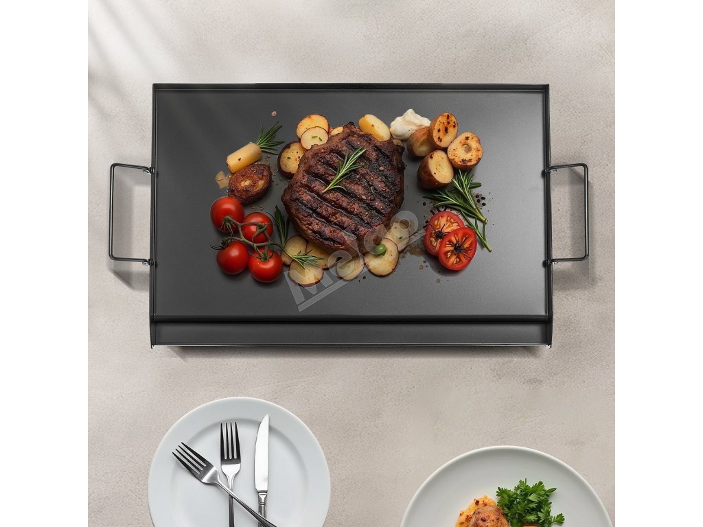 Grilovacia platňa z uhlíkovej ocele 24×16 inch obdĺžniková s rukoväťou