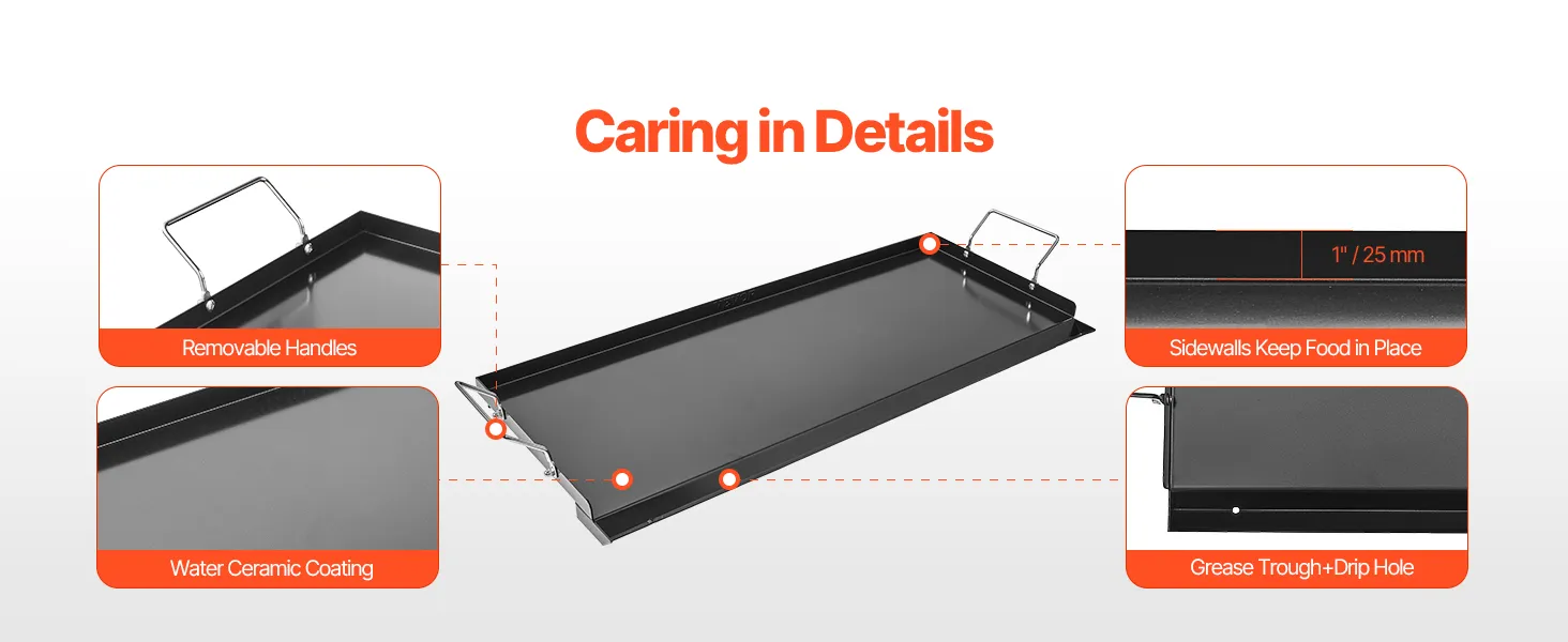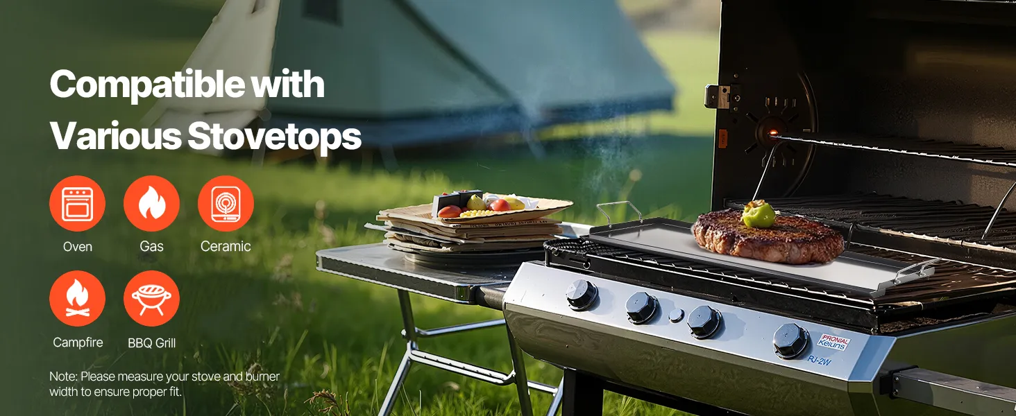 Otázka 1: Je táto panvica na pečenie kompatibilná s väčšinou varných dosiek? A1: Áno! Naša panvica na pečenie je navrhnutá tak, aby bola kompatibilná s väčšinou sporákov vrátane elektrických a plynových sporákov. Skvele funguje aj na vonkajších griloch alebo kempingových varičoch, takže je univerzálna na varenie v interiéri aj exteriéri. Otázka č. 2: Dá sa panvica na grilovanie ľahko čistiť? A2: Áno! Panvica na grilovanie je vybavená nepriľnavou vrstvou, vďaka ktorej je čistenie hračkou. Po použití ju jednoducho utrite mäkkou špongiou alebo handričkou. V prípade silnejších škvŕn ju na niekoľko minút namočte do teplej mydlovej vody a väčšina z nich sa odstráni s minimálnym úsilím. Otázka 3: Mám plynový gril so 6 horákmi. Nejaké odporúčania na zabránenie deformácii? A3: Rošt je špeciálne skonštruovaný tak, aby zabránil deformácii. Na spodnej strane sa nachádzajú spevňujúce krížové diely. Rošt neumiestňujte na teplotu vyššiu ako 500℉. Tipy: Pred pridaním potravín nechajte grilovací rošt pomaly zahriať na miernu teplotu.