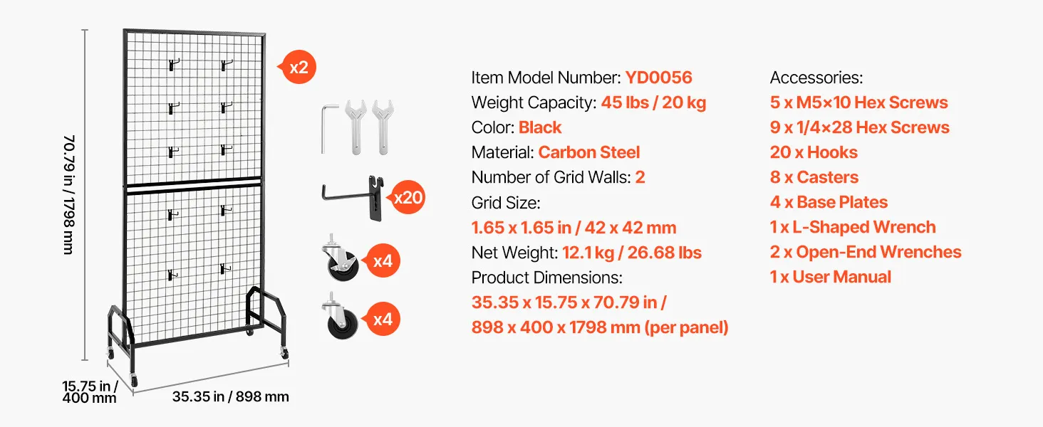 Vneste do svojho priestoru poriadok a predveďte svoju kreativitu. Naša robustná mriežková stena poskytuje dostatok priestoru pre vaše predmety a stáva sa tak nevyhnutným pomocníkom vo vašom živote. Je ideálna na domácu organizáciu aj komerčné vystavenie a spája v sebe pohodlie so štýlom.