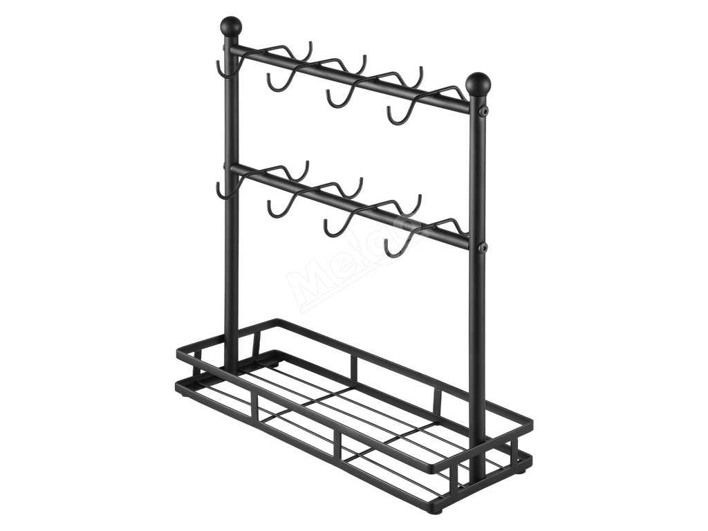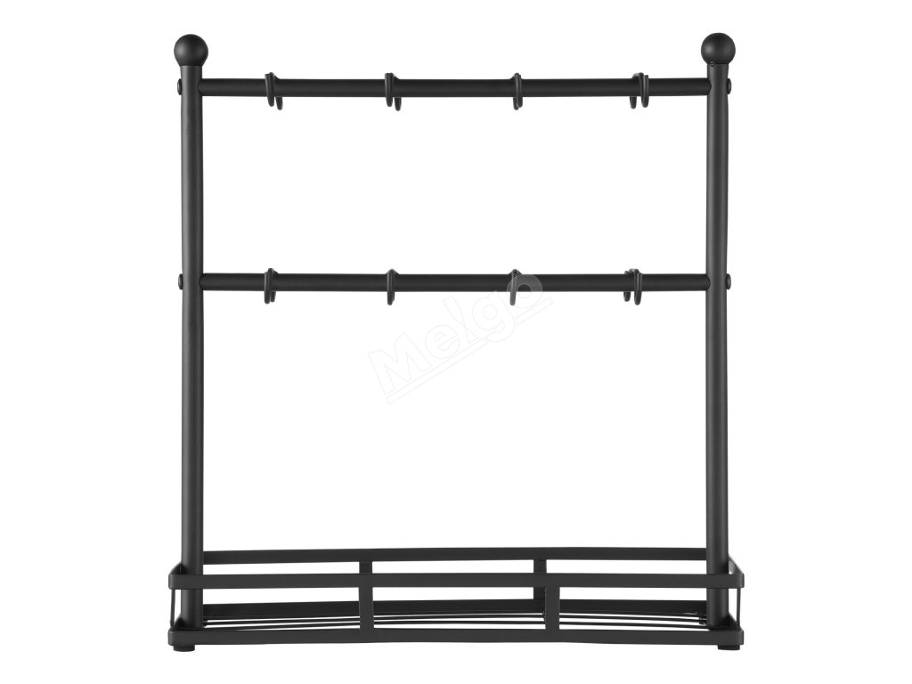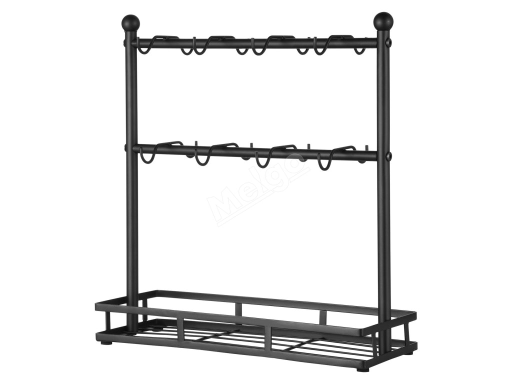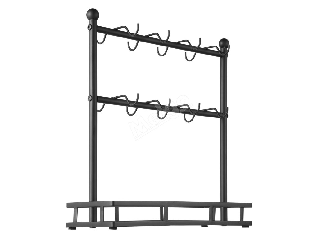 Stojan na hrnčeky na pult, 16 háčikov, 2 poschodia, oceľ, matne čierny