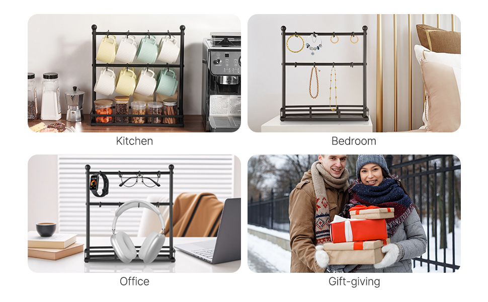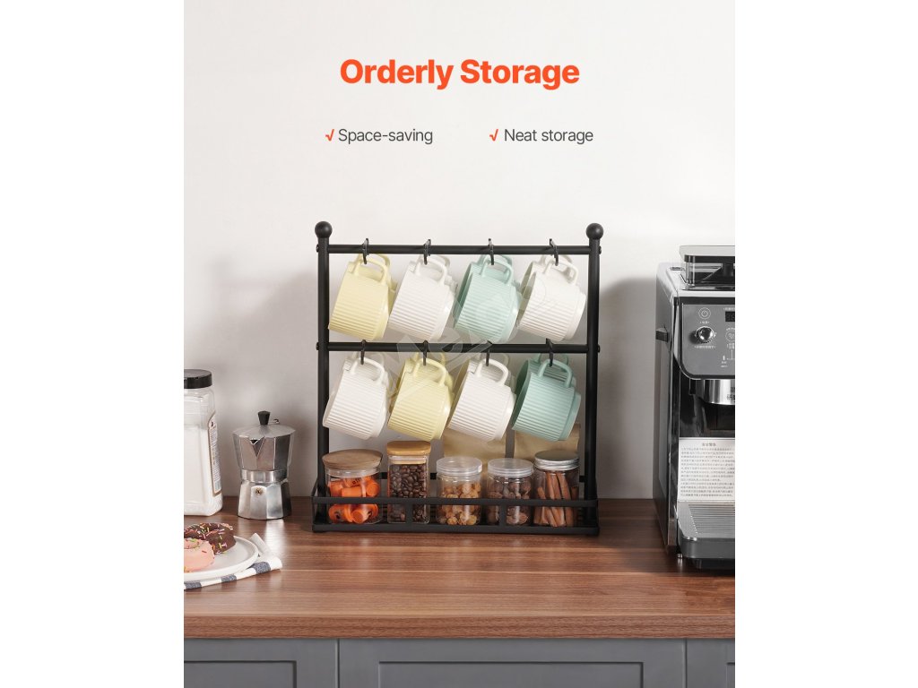 Držiak na hrnčeky vám pomôže maximálne využiť priestor a voľne ho umiestniť v kancelárii, kuchyni alebo doma. Pomáha pri organizovaní a ukladaní hrnčekov na kávu, ako aj príslušenstva a ďalších predmetov, vďaka čomu udrží váš pult v čistote a poriadku.