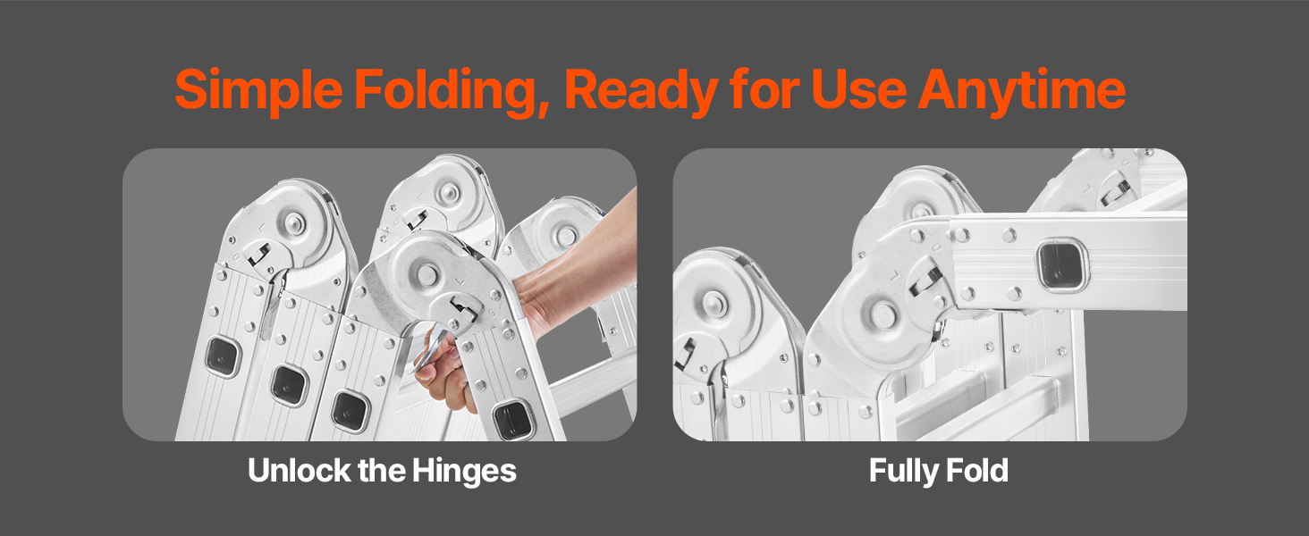 Tento multifunkčný skladací rebrík spĺňa všetky vaše potreby v oblasti výškového prístupu. Je vyrobený zo zosilneného hliníka, je odolný voči ohýbaniu alebo deformácii. Záves je nastaviteľný v uhloch 35°, 107° a 180°. ideálny na domáce, pracovné a vonkajšie úlohy, poskytuje stabilitu a všestrannosť v každej situácii.