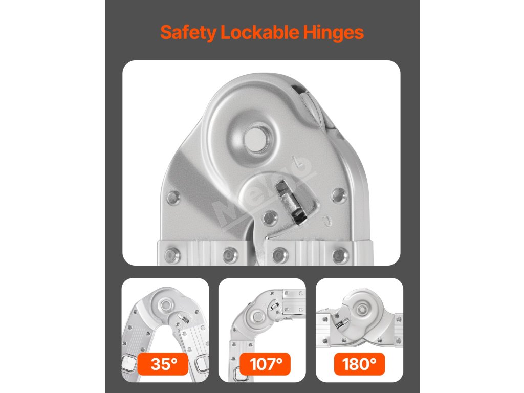Tento multifunkčný skladací rebrík spĺňa všetky vaše potreby v oblasti výškového prístupu. Je vyrobený zo zosilneného hliníka, je odolný voči ohýbaniu alebo deformácii. Záves je nastaviteľný v uhloch 35°, 107° a 180°. ideálny na domáce, pracovné a vonkajšie úlohy, poskytuje stabilitu a všestrannosť v každej situácii.