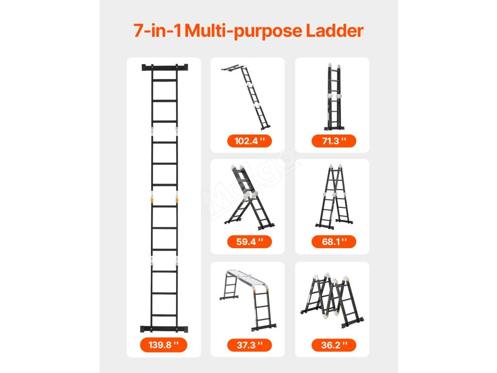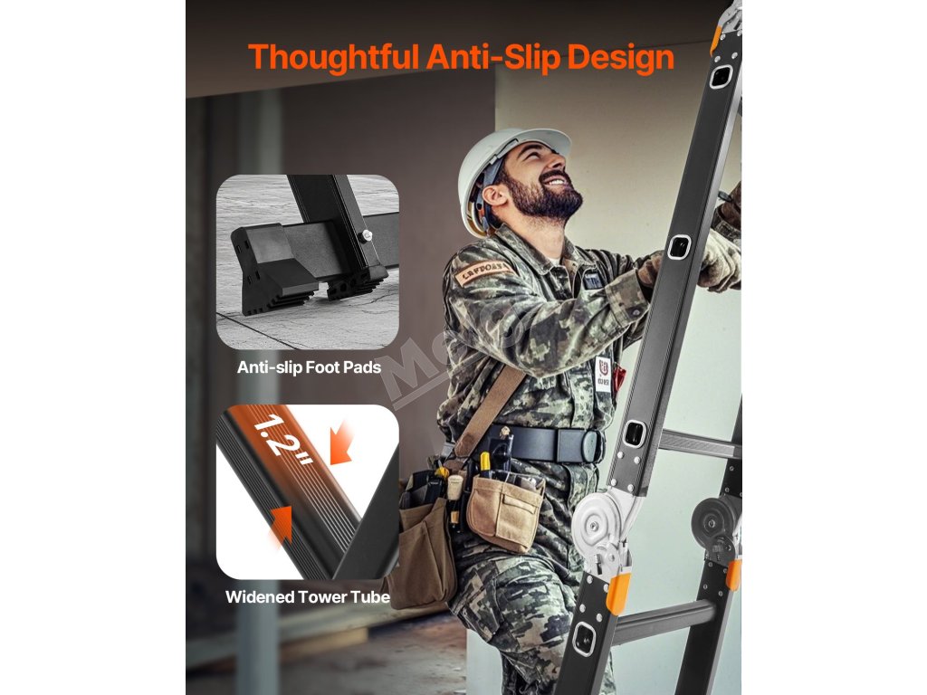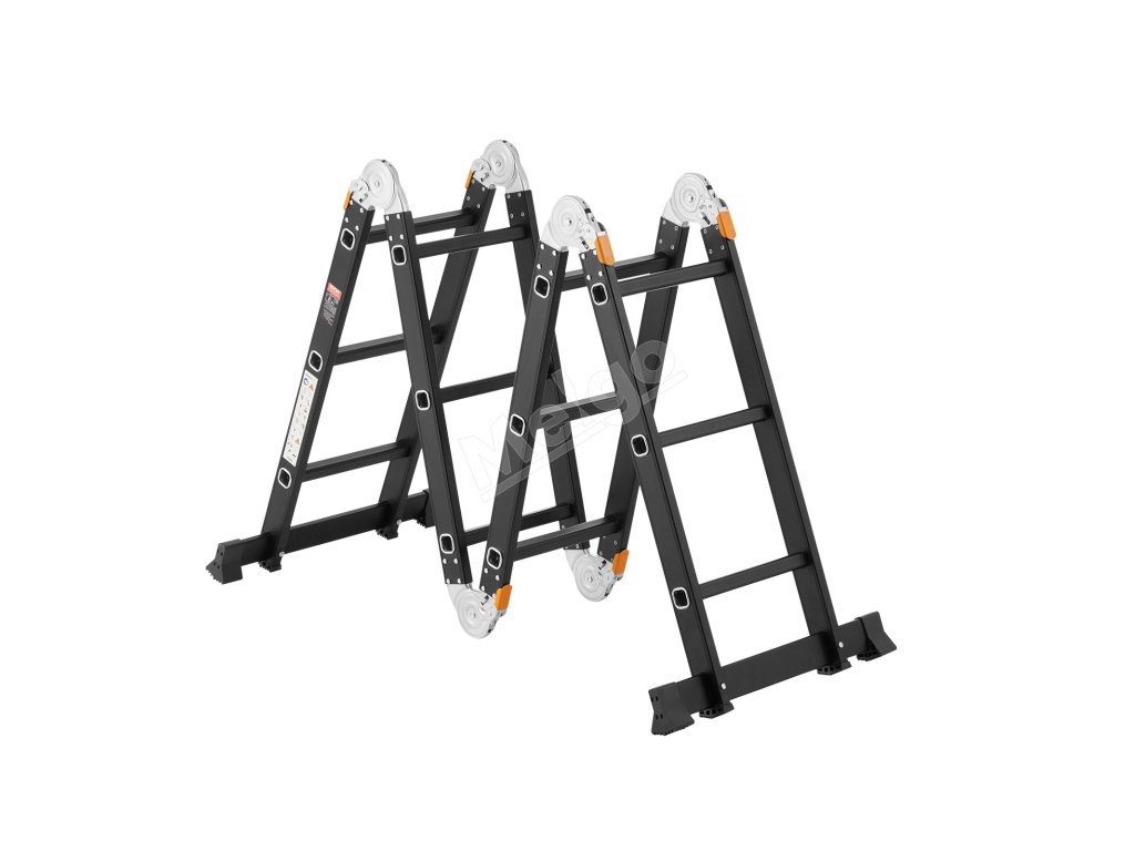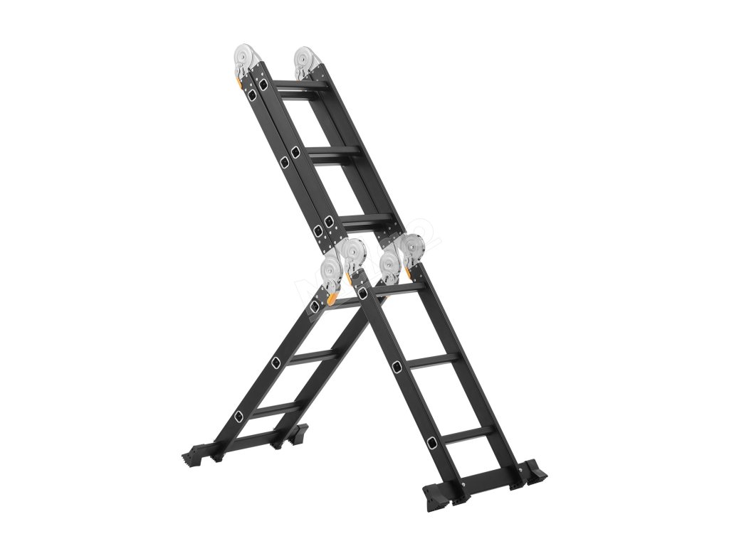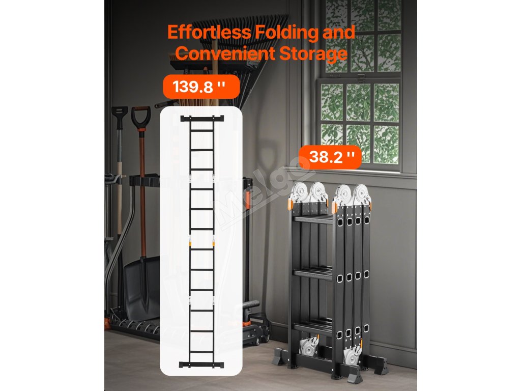 Tento rebrík sa dá ľahko premeniť na rám v tvare písmena A, rám v tvare písmena M, rebrík, rám v tvare písmena L, plošinu, sklopný a rovný tvar, čo poskytuje bezkonkurenčnú všestrannosť na širokú škálu úloh.