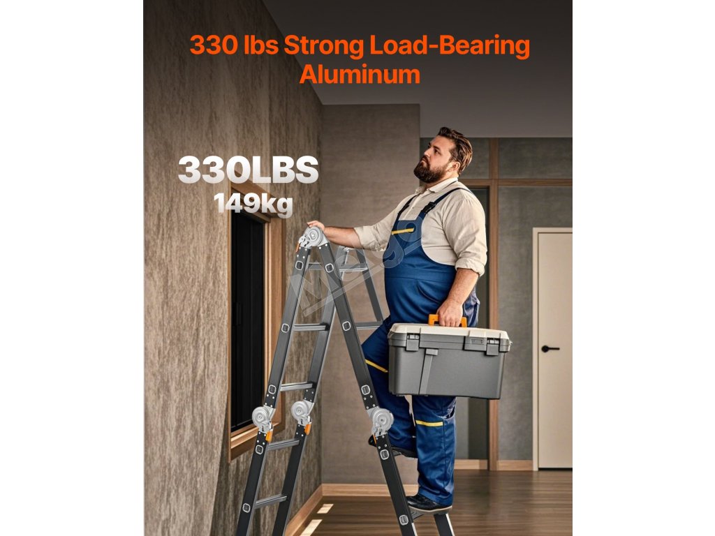 Tento multifunkčný skladací rebrík spĺňa všetky vaše potreby v oblasti výškového prístupu. Je vyrobený zo zosilneného hliníka, je odolný voči ohýbaniu alebo deformácii. Záves je nastaviteľný v uhloch 35°, 107° a 180°. ideálny na domáce, pracovné a vonkajšie úlohy, poskytuje stabilitu a všestrannosť v každej situácii.