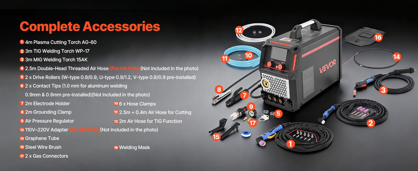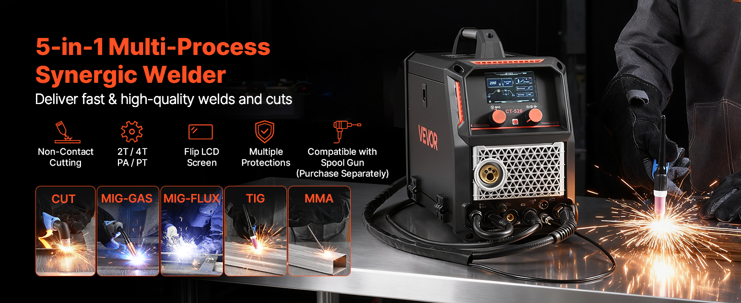 Tento kompaktný, ale výkonný kombinovaný stroj 5 v 1 poskytuje profesionálny výkon pri zváraní a rezaní, nech ste kdekoľvek - ideálny pre dielne, garáže, domáce projekty a opravy na mieste.
