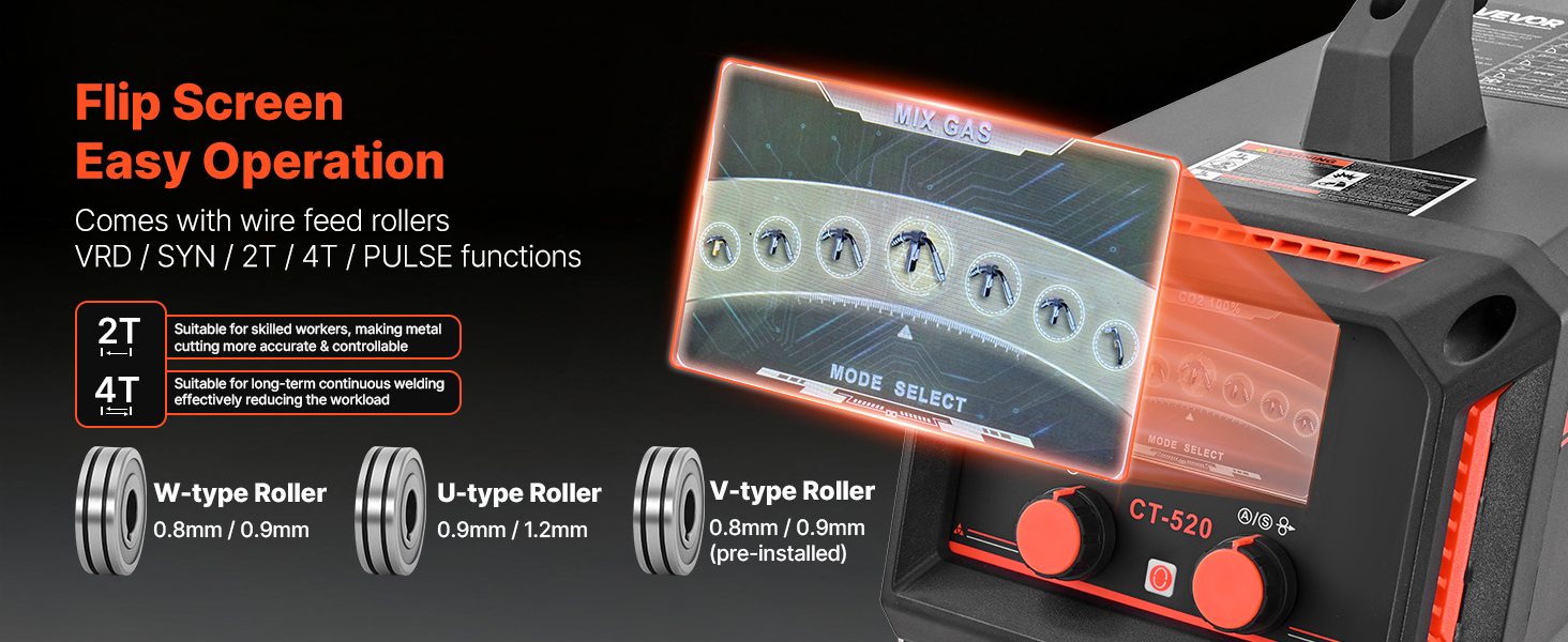 Tento plazmový rezací a zvárací stroj je vybavený výklopným LCD displejom na prehľadné zobrazenie parametrov, poskytuje tiež synergické ovládanie, režimy 2T/4T a funkcie PA/PT plus VRD, čím zabezpečuje stabilnú, efektívnu a bezpečnú prevádzku.