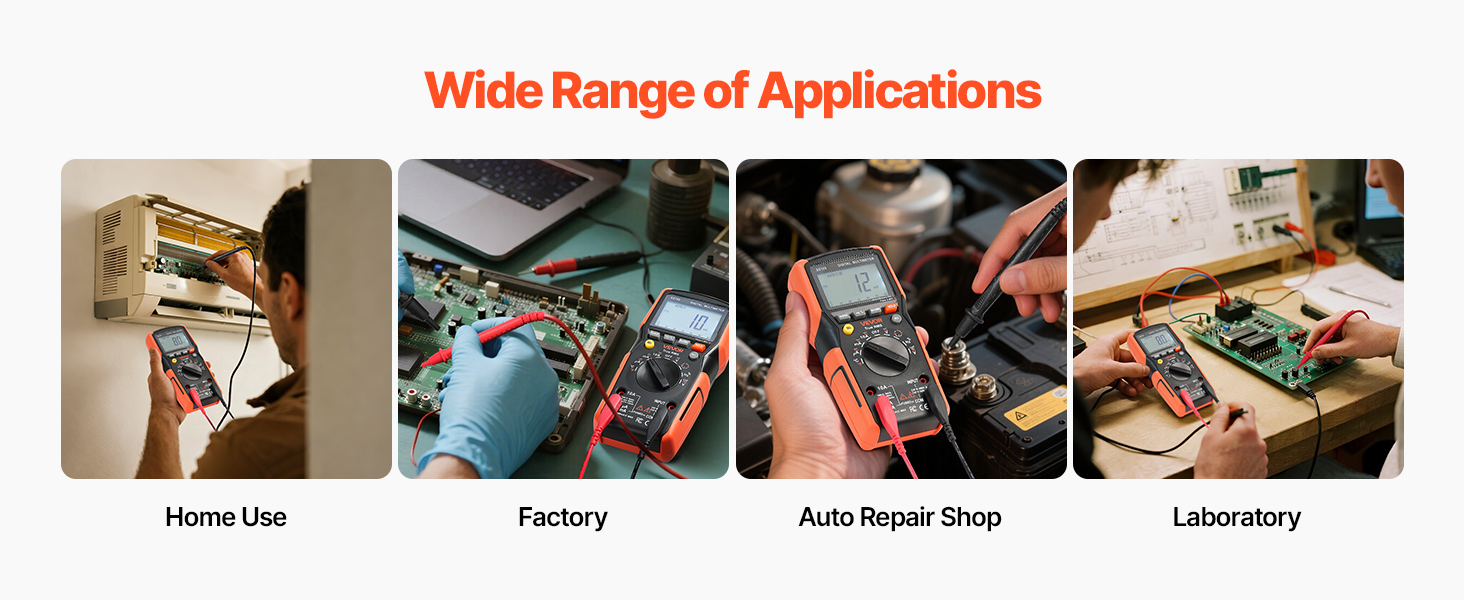 Tento profesionálny digitálny multimeter je vhodný na odstraňovanie porúch domácich spotrebičov, testovanie automobilových obvodov, presné laboratórne merania a ďalšie činnosti, ľahko zvládne širokú škálu opravárenských a testovacích úloh.