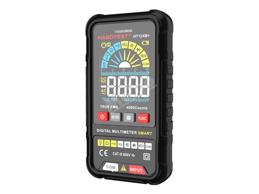 Digitálny univerzálny multimeter Habotest HT124B+ je praktické zariadenie, ktoré prekvapí rozsiahlosťou svojich možností. Okrem iného umožňuje s vysokou presnosťou merať striedavé a jednosmerné napätie, odpor, spojitosť alebo kapacitu. Okrem toho ponúka funkciu Live Test, umožňuje testovanie diód, bezkontaktnú detekciu napätia (NCV) a mnoho ďalšieho. Dôležité je, že multimeter má praktické tlačidlá, pomocou ktorých môžete efektívne zvoliť funkciu.