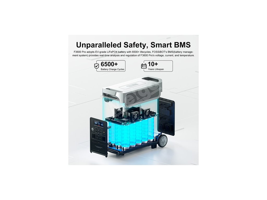 Batéria F3600 Pro je skonštruovaná s vysokobezpečnostnou batériou LiFePO4, ktorá zaručuje stabilnú a bezpečnú prevádzku počas viac ako 6500 cyklov nabíjania/vybíjania a ponúka životnosť, ktorá sa vyrovná elektromobilom. Táto pokročilá technológia batérie zaručuje spoľahlivý výkon na viac ako desať rokov.