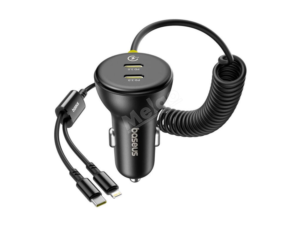 60W nabíjačka do auta Baseus USB-C + Lightning kábel (čierna)