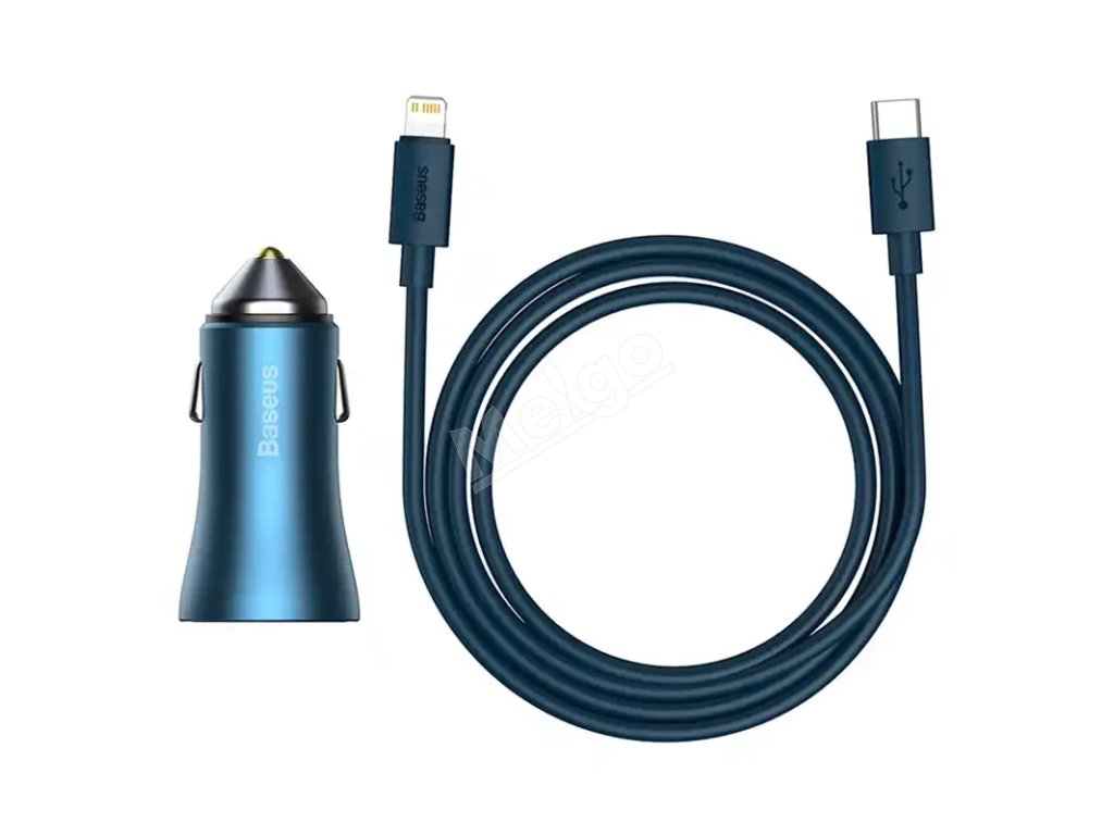 Baseus Golden Contactor Pro nabíjačka do auta, USB + USB-C, QC4.0+, PD, SCP, 40W (modrá) + USB-C - Lightning kábel 1m (modrá)