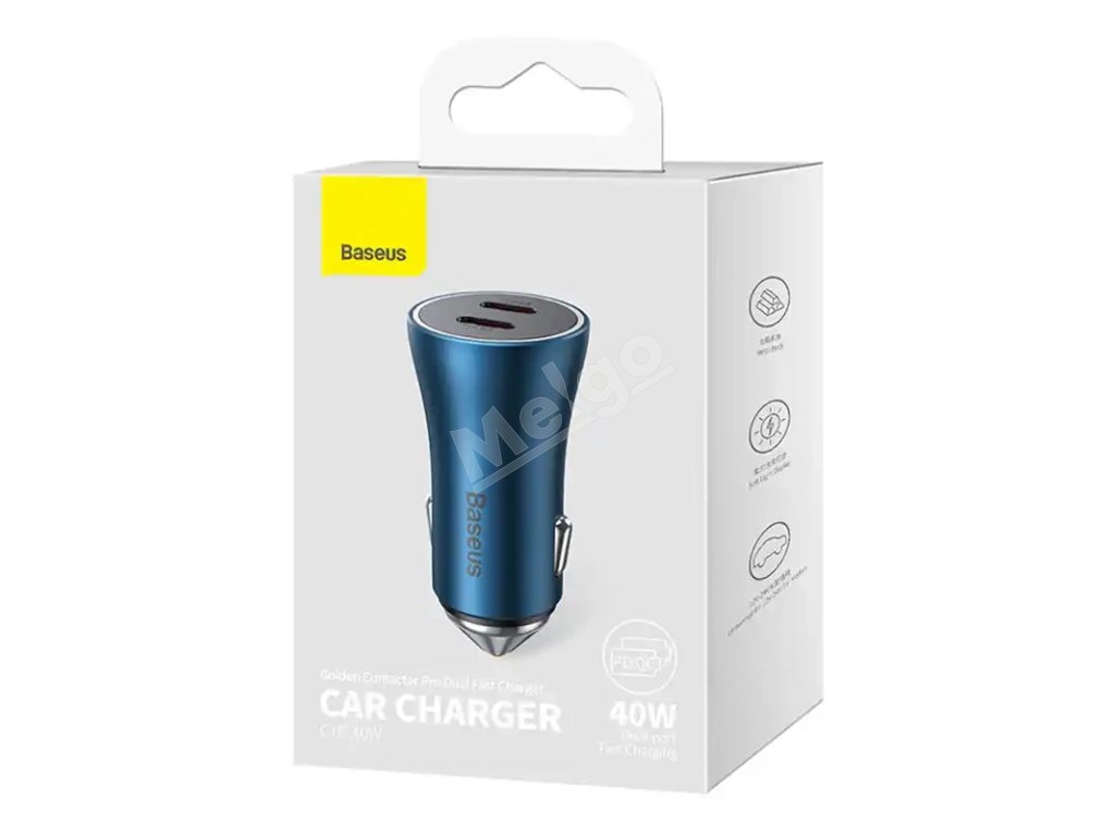 Nabíjačka do auta Baseus Golden Contactor Pro, 2x USB-C, 40 W (modrá)