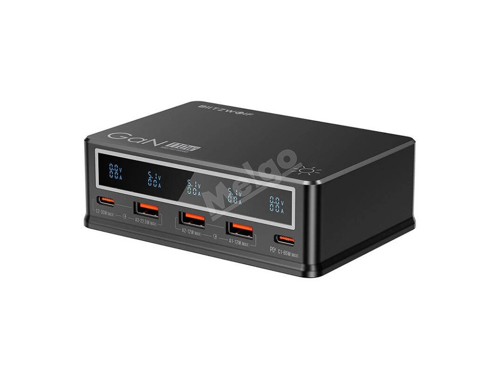 Jednou z najpôsobivejších vlastností nabíjačky Blitzwolf BW-i9 je jej schopnosť napájať až päť zariadení súčasne, vďaka čomu je neuveriteľne všestranná. Táto nabíjačka je vybavená tromi portmi USB-A a dvoma portmi USB-C, takže dokáže prispôsobiť svoj nabíjací výkon špecifickým potrebám každého pripojeného zariadenia. S maximálnym výkonom 110 W zabezpečuje nabíjanie všetkých vašich zariadení, od smartfónov a tabletov až po notebooky a iné elektronické zariadenia, čo z nej robí ideálne riešenie pre tých, ktorí potrebujú efektívny a rýchly zdroj energie