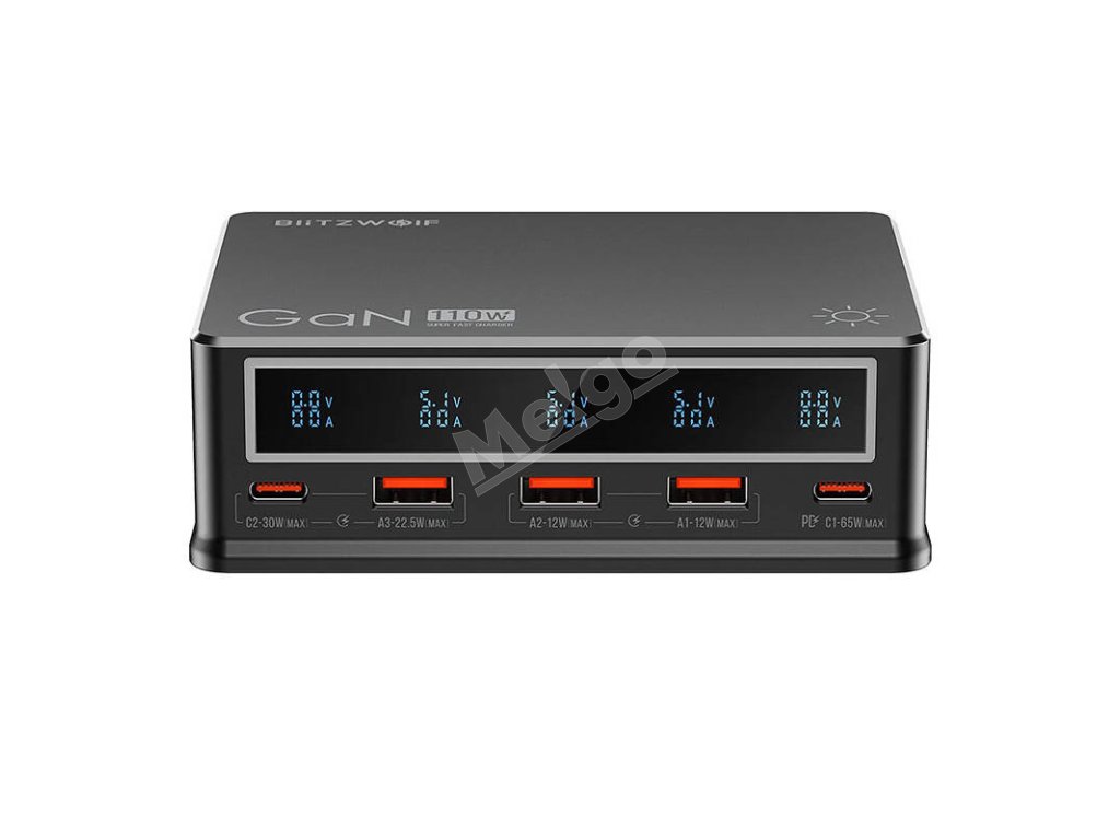 Blitzwolf BW-i9 110W PD 3xUSB-A, 2xUSB-C sieťová nabíjačka (čierna)