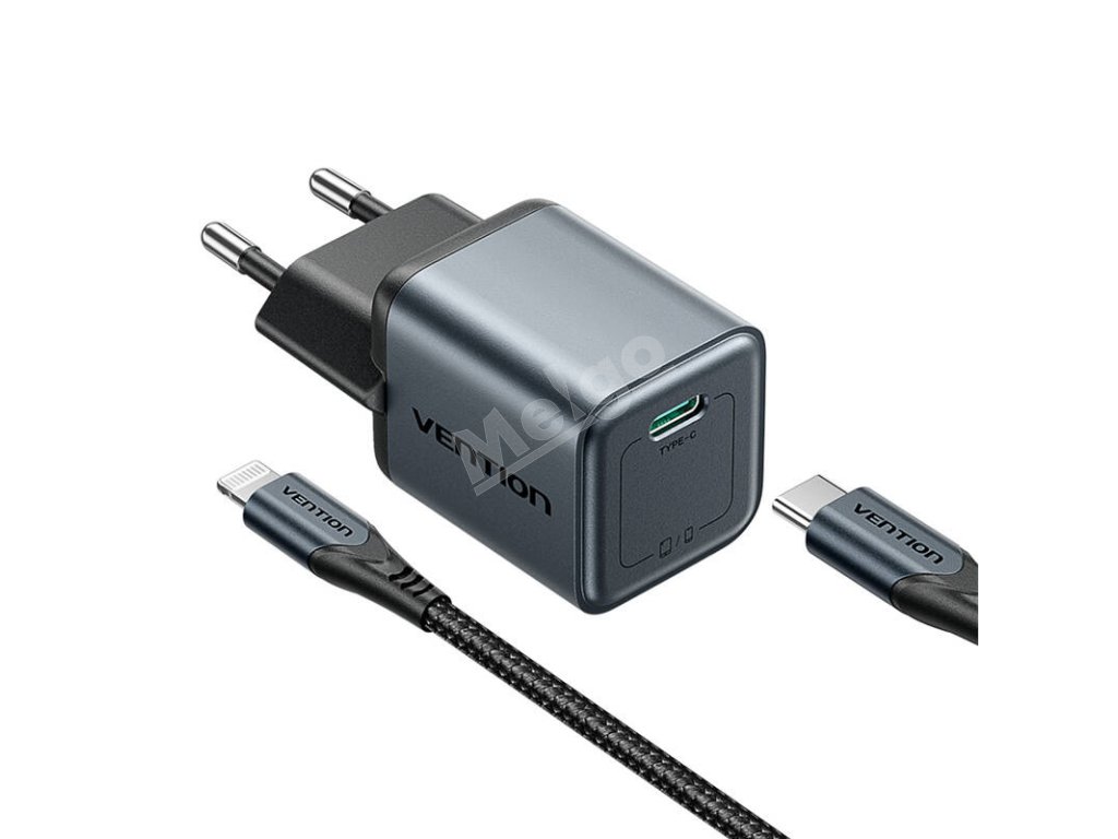 GaN Vention USB-C 20W nabíjačka + USB-C-L 1m kábel (sivá)