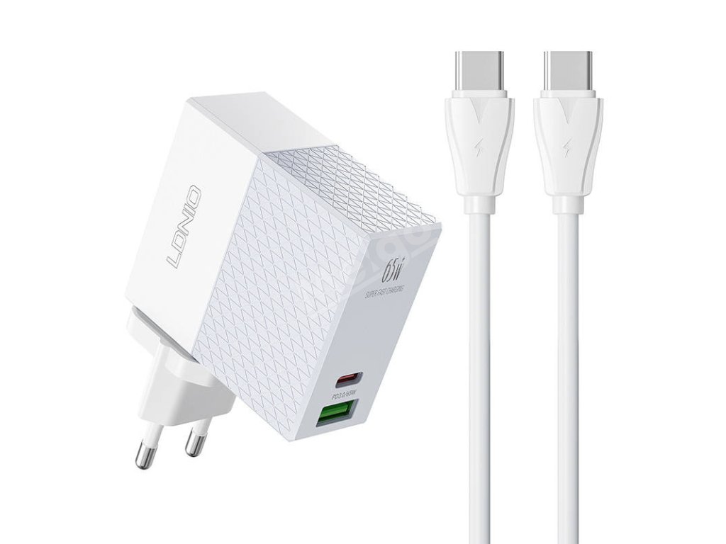 LDNIO A2620C USB, USB-C 65W sieťová nabíjačka + kábel USB-C - USB-C