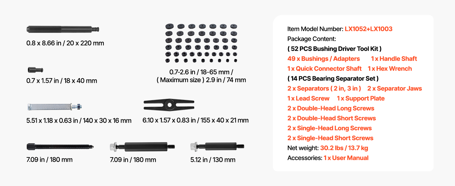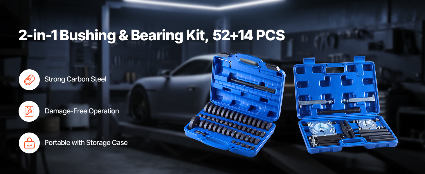 Súprava vodičov ložísk a tesnení obsahuje objímky kotúčov vo viacerých veľkostiach a kompletný montážny nástroj v balení. Naša súprava na lisovanie ložísk vám umožní rýchlu a bezpečnú montáž a splní vaše požiadavky na demontáž ložísk.