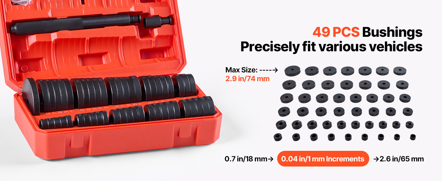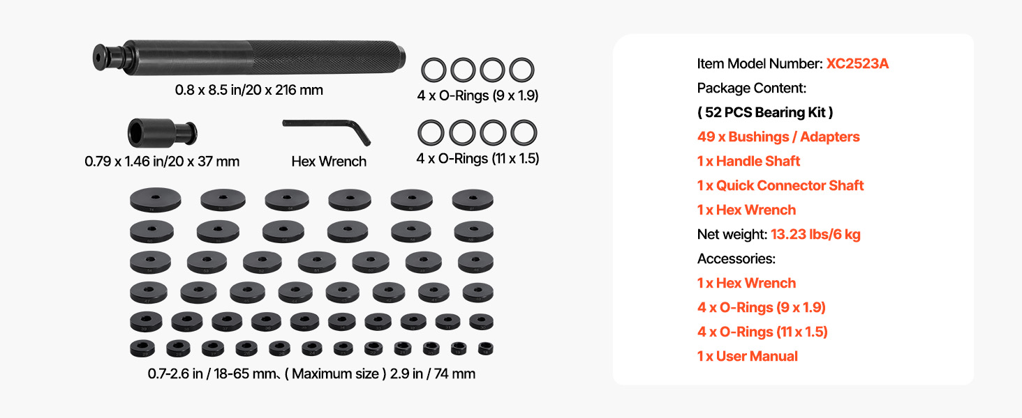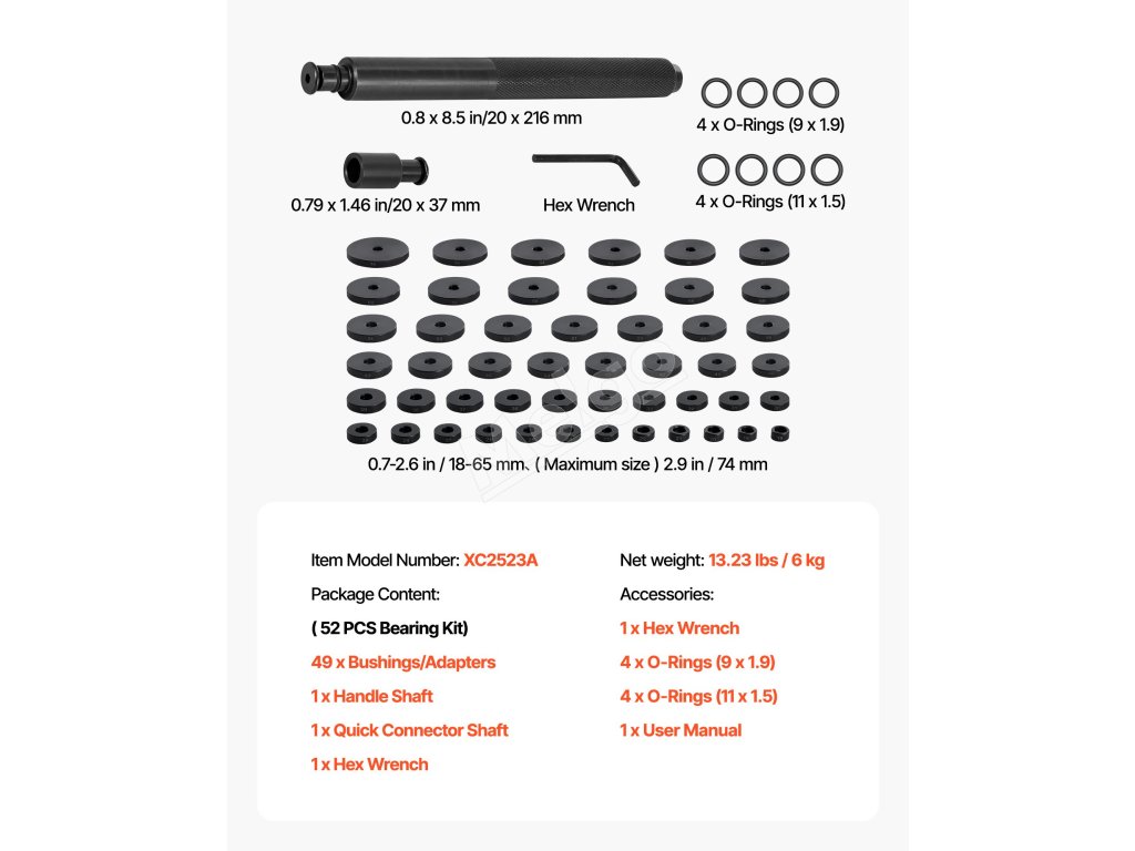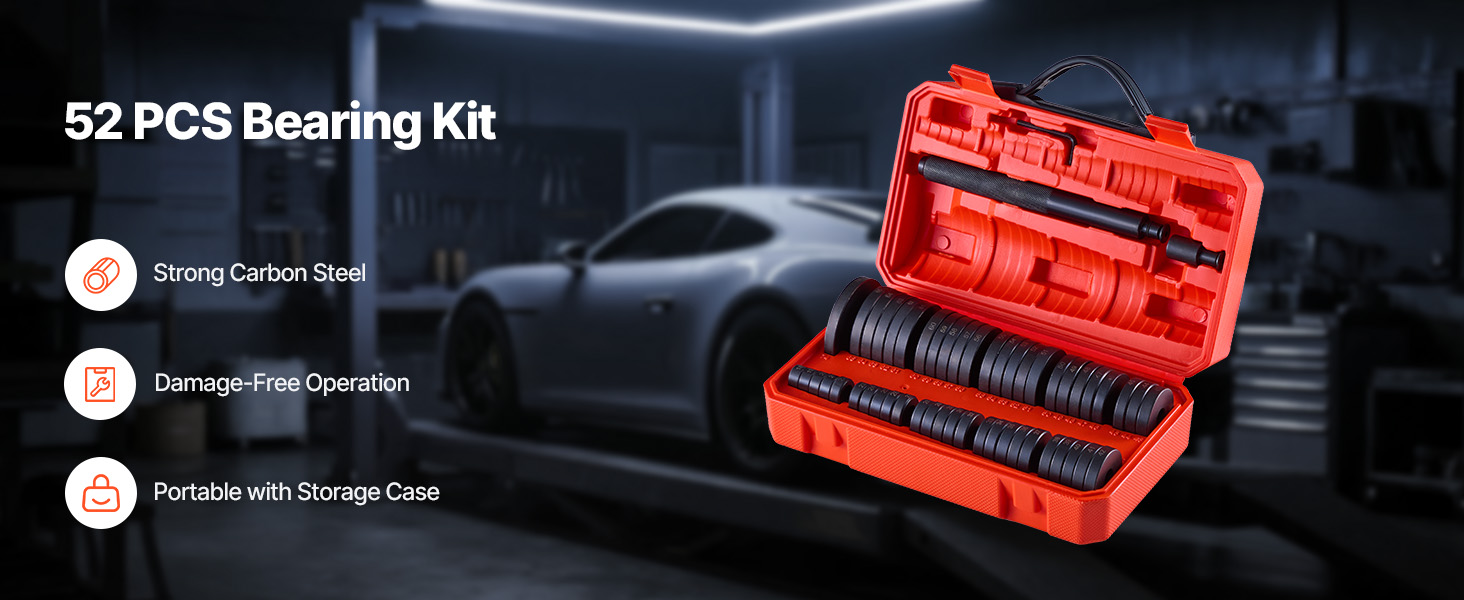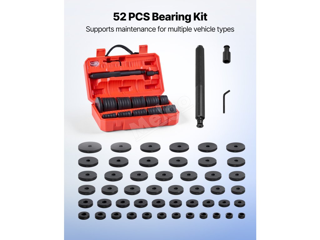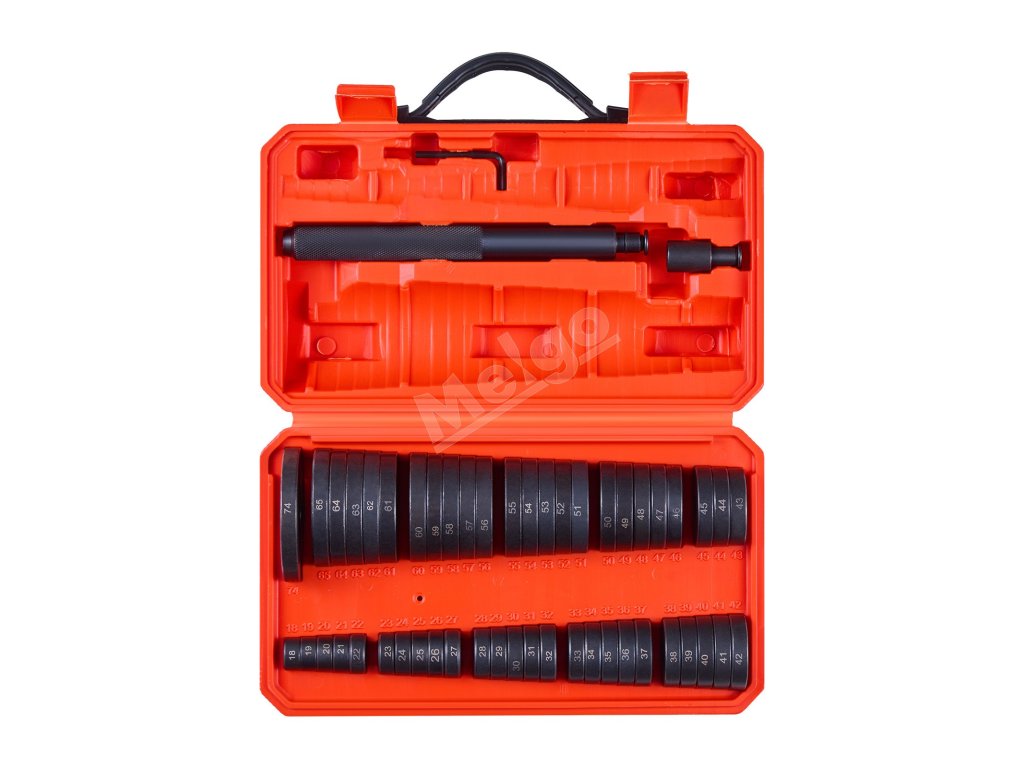 Súprava vodičov ložísk a tesnení obsahuje objímky kotúčov vo viacerých veľkostiach a kompletný montážny nástroj v balení. Naša súprava na lisovanie ložísk vám umožní rýchlu a bezpečnú montáž a splní vaše požiadavky na demontáž ložísk.