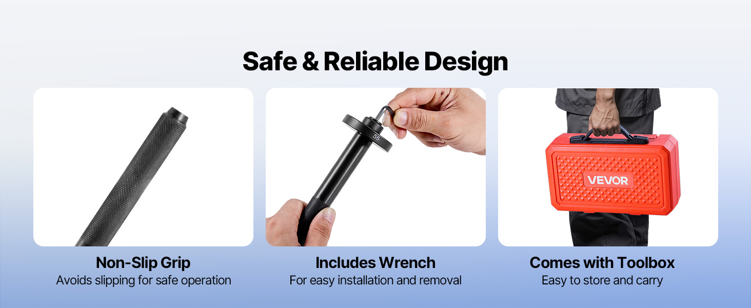 Táto súprava vodičov ložiskových tesnení, vyrobená z robustného kovu s čiernym povrchom odolným proti korózii, poskytuje dlhodobý výkon. Predĺžená a zhrubnutá rukoväť poskytuje lepší úchop na efektívnu demontáž ložiska.