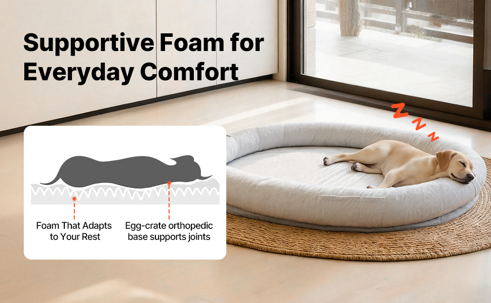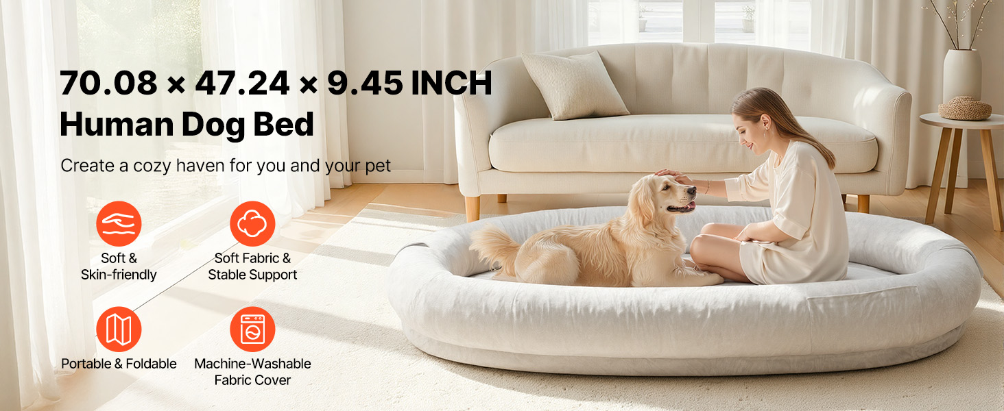 Po dokončení nastavenia ponúka nadrozmerný pelech pre psov pre ľudí útulné zákutie, v ktorom sa môžete spolu so svojím domácim miláčikom schúliť a užívať si jemný odpočinok a teplú spoločnosť. Stane sa malým spoločným útočiskom, ktoré nabáda k blízkosti, pokojnému odpočinku a jednoduchým chvíľam, ktoré si budete vážiť.