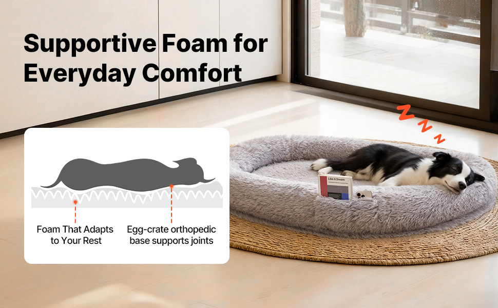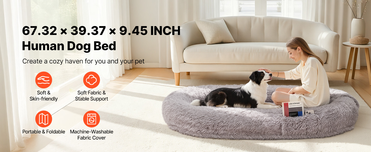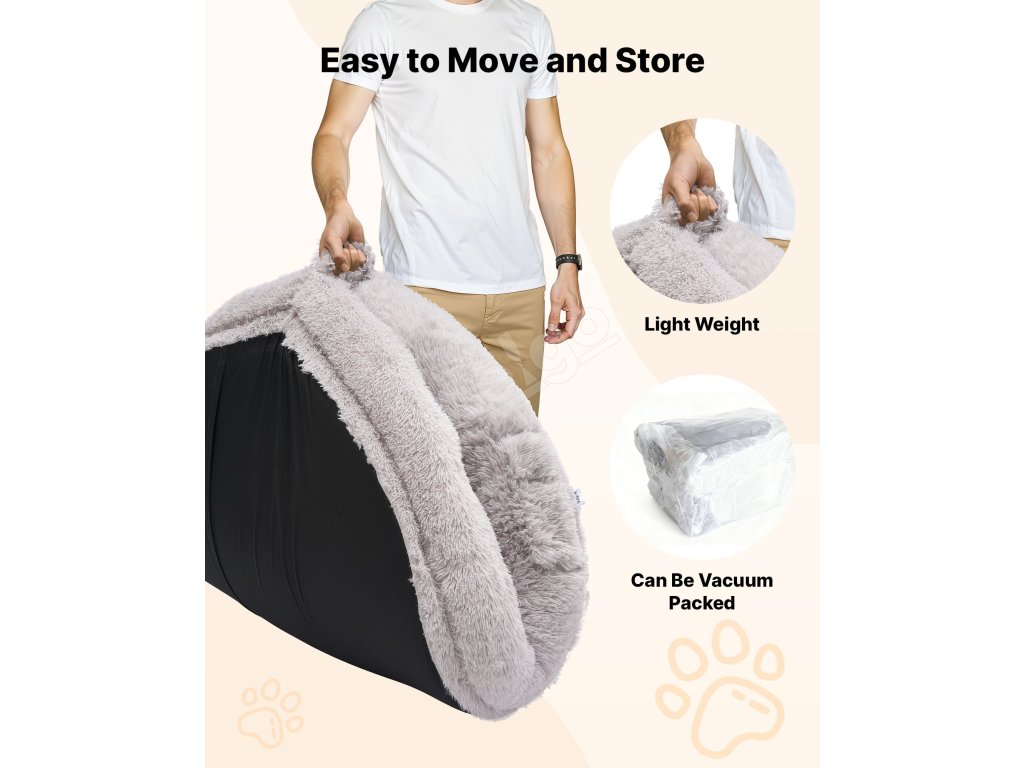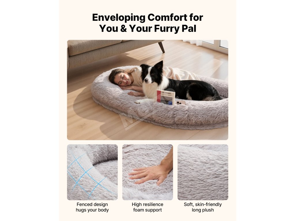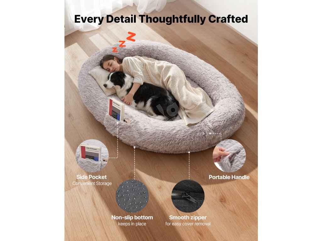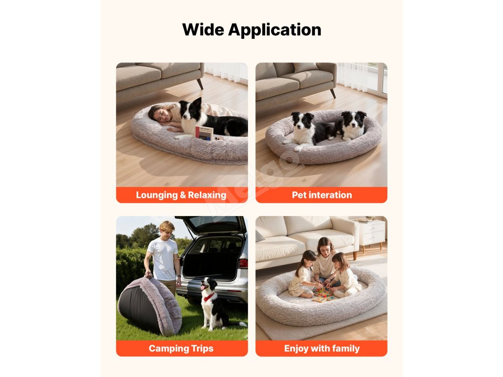Po dokončení nastavenia ponúka nadrozmerný pelech pre psov pre ľudí útulné zákutie, v ktorom sa môžete spolu so svojím domácim miláčikom schúliť a užívať si jemný odpočinok a teplú spoločnosť. Stane sa malým spoločným útočiskom, ktoré nabáda k blízkosti, pokojnému odpočinku a jednoduchým chvíľam, ktoré si budete vážiť.