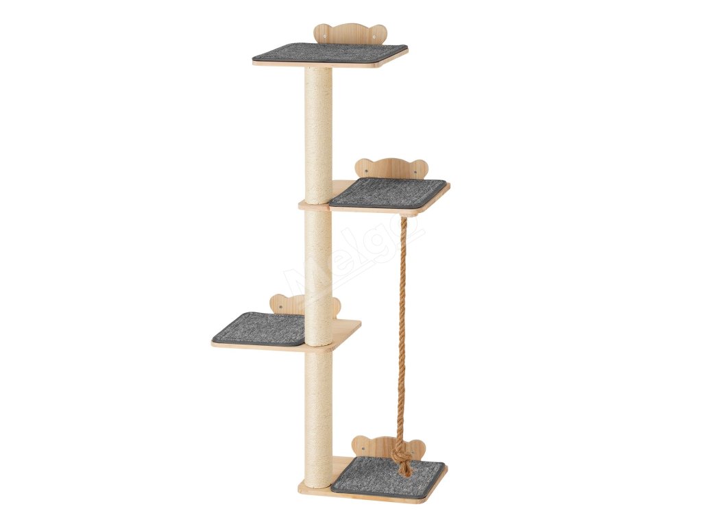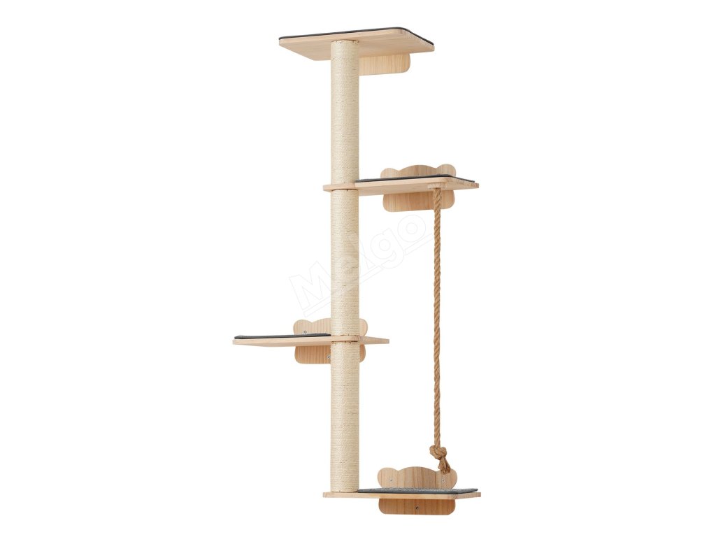 Stenová polica pre mačky 4 poschodia, 12 mm borovica, nosnosť 40 lbs