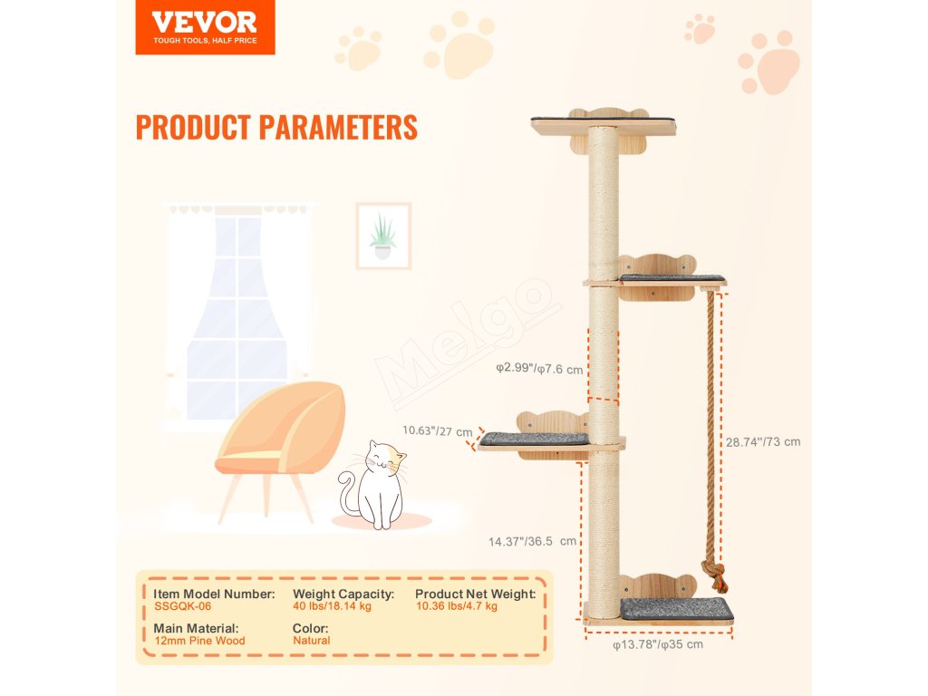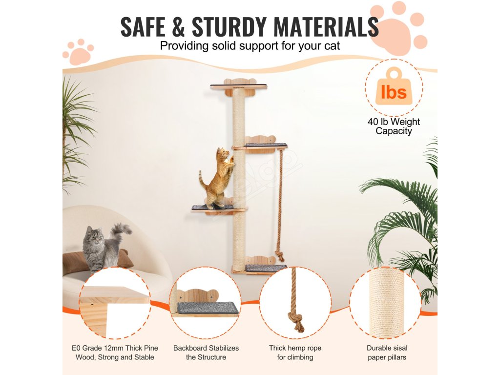 Nástenné police pre mačky VEVOR - zábavný priestor pre vašu mačku!