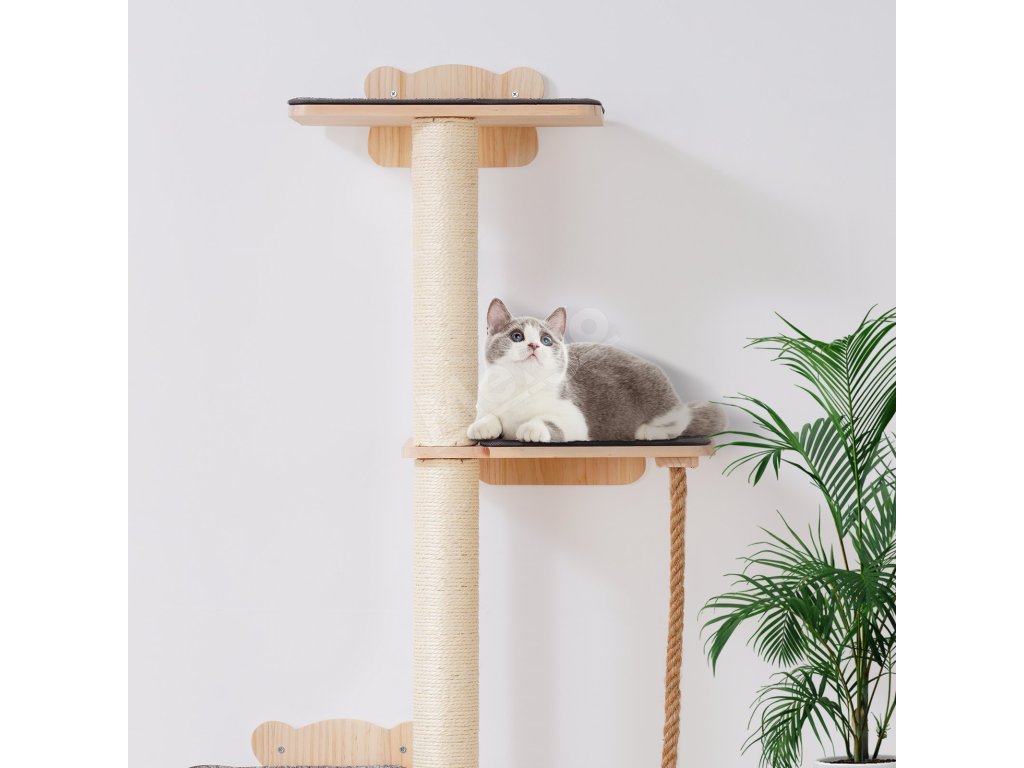 Drevený povrch je vylepšený plyšovou podložkou, ktorá poskytuje silnú protišmykovosť a pohodlie a chráni labky vašej mačky.
