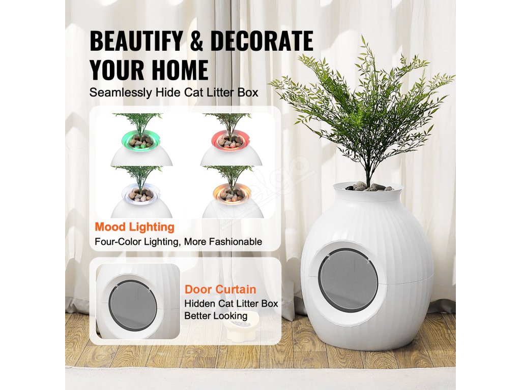 Štýlový dizajn s praktickým príslušenstvom na zvýšenie komfortu pri používaní. Meniace sa osvetlenie a priložená lopatka na podstielku vám prinášajú estetický pocit a zároveň vám uľahčujú upratovanie podstielky.