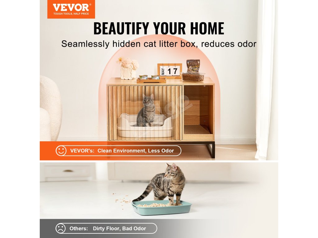 Táto skrinka na schránku na odpadky pre mačky môže slúžiť aj ako konferenčný stolík, úložná skrinka alebo stojan na TV. Vďaka svojmu multifunkčnému dizajnu je dokonalým doplnkom do každej miestnosti, či už je to obývacia izba, spálňa, alebo pri okne.