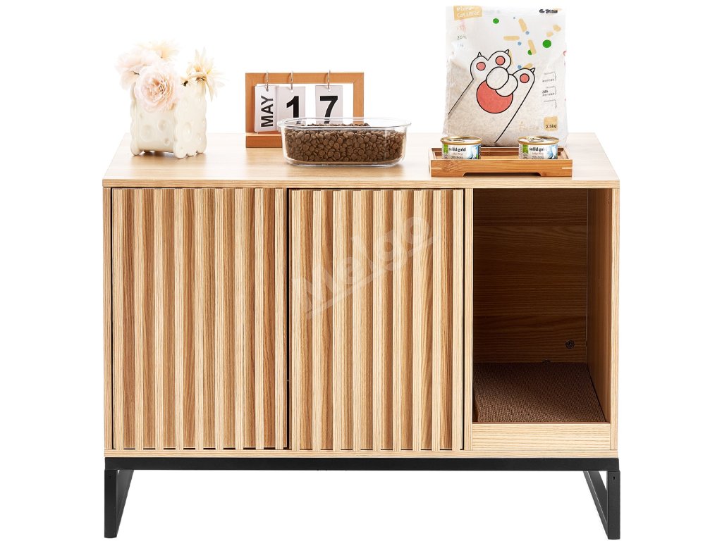 Tento kryt na mačacie záchody dokonale spája štýl a funkčnosť, poskytuje vašej mačke súkromný a pohodlný priestor a zároveň slúži ako praktický kus domáceho nábytku. Jeho elegantný dizajn sa bez problémov začlení do akéhokoľvek interiéru, vďaka čomu bude váš domov uprataný a vaša mačka spokojná.