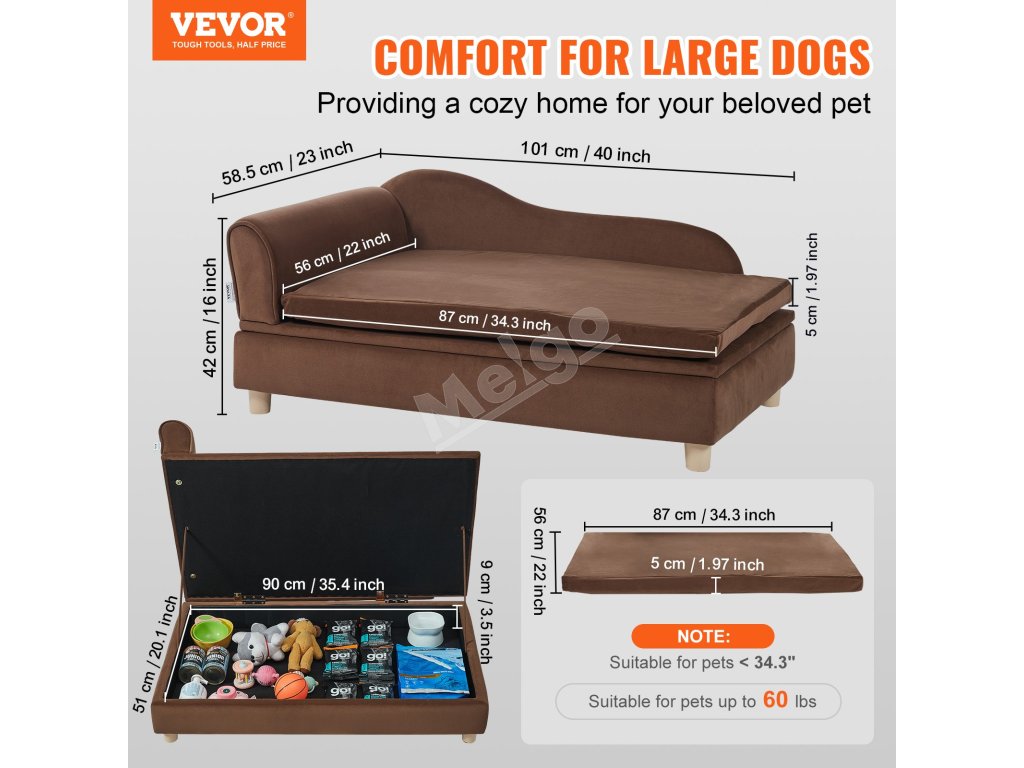 Naša pohovka pre domácich miláčikov je vybavená 2" vysoko pružnou hubou pre bezkonkurenčné pohodlie! Rám z masívneho dreva unesie až 110 kg a ponúka útulné a zároveň stabilné miesto na odpočinok aj pre psy veľkých rozmerov.
