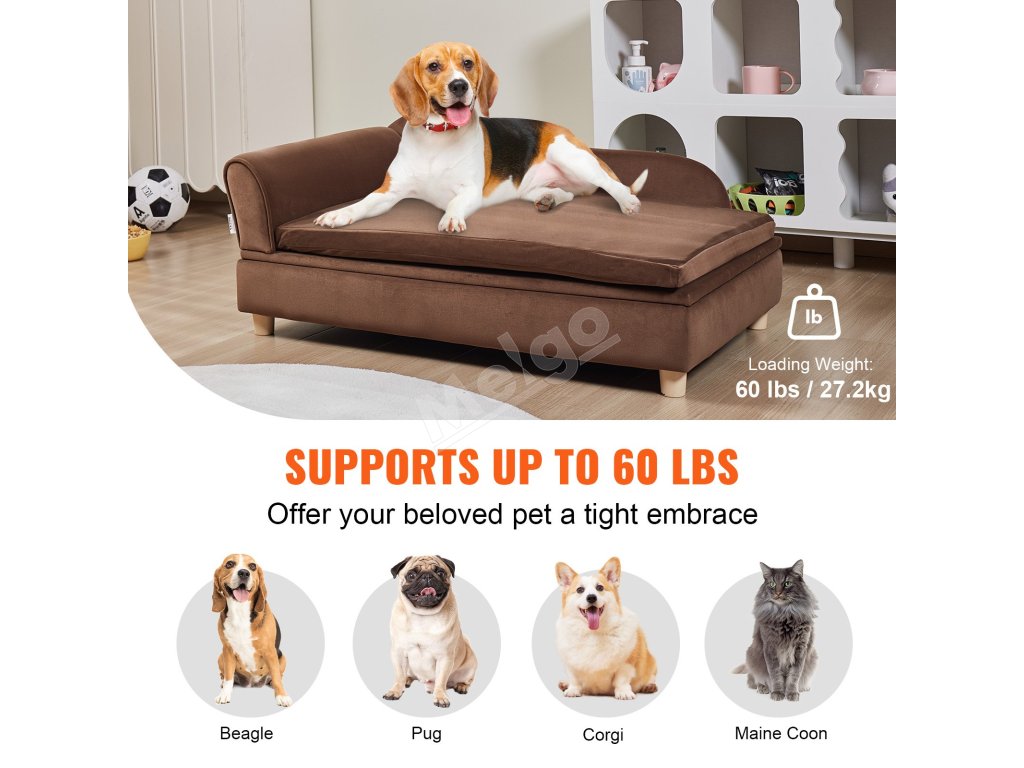 Domáca pohovka pre psy a mačky, nosnosť 110 lbs (49.9 kg), tmavohnedá