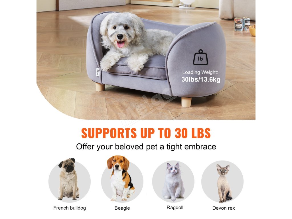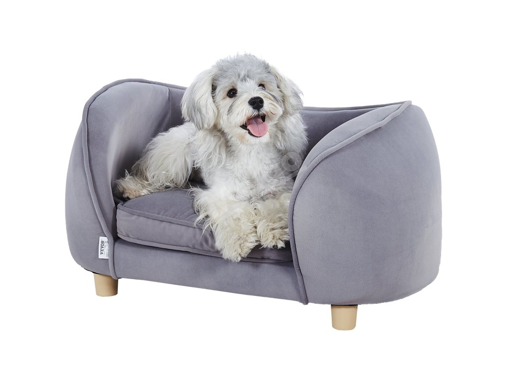 Psia pohovka pre malé psy a mačky, zamatový poťah, 66 lbs, tmavosivá