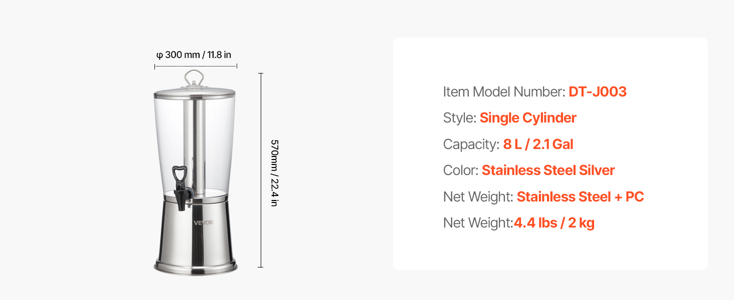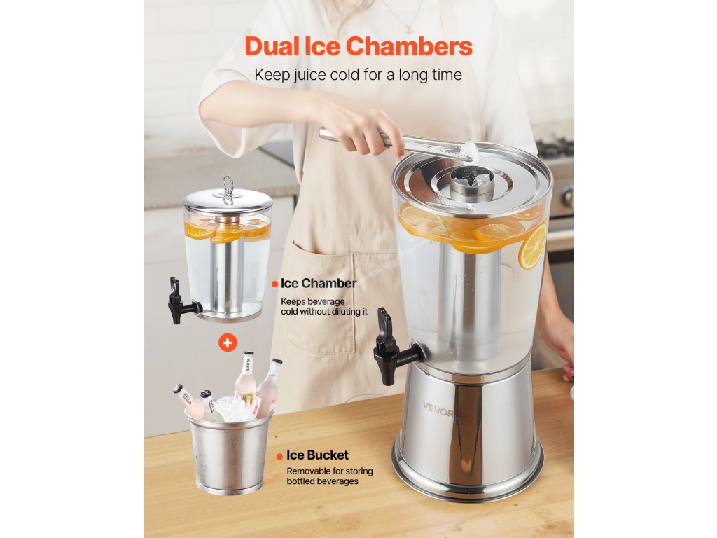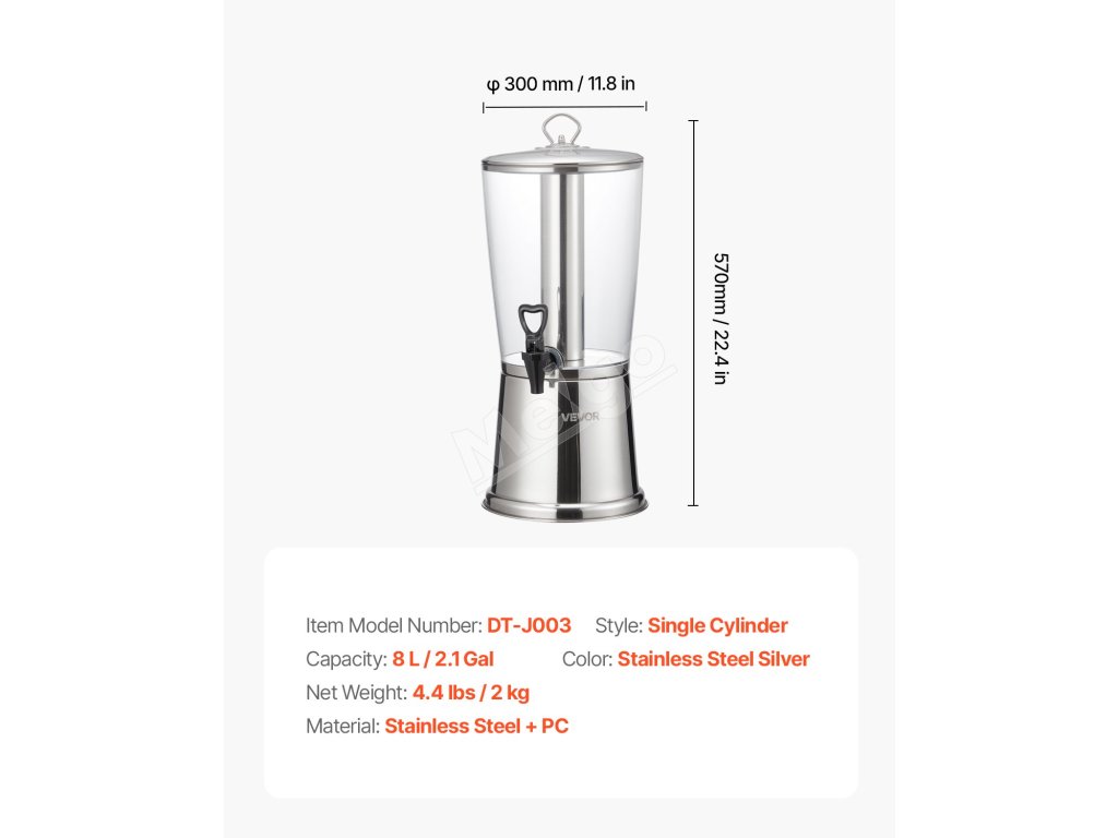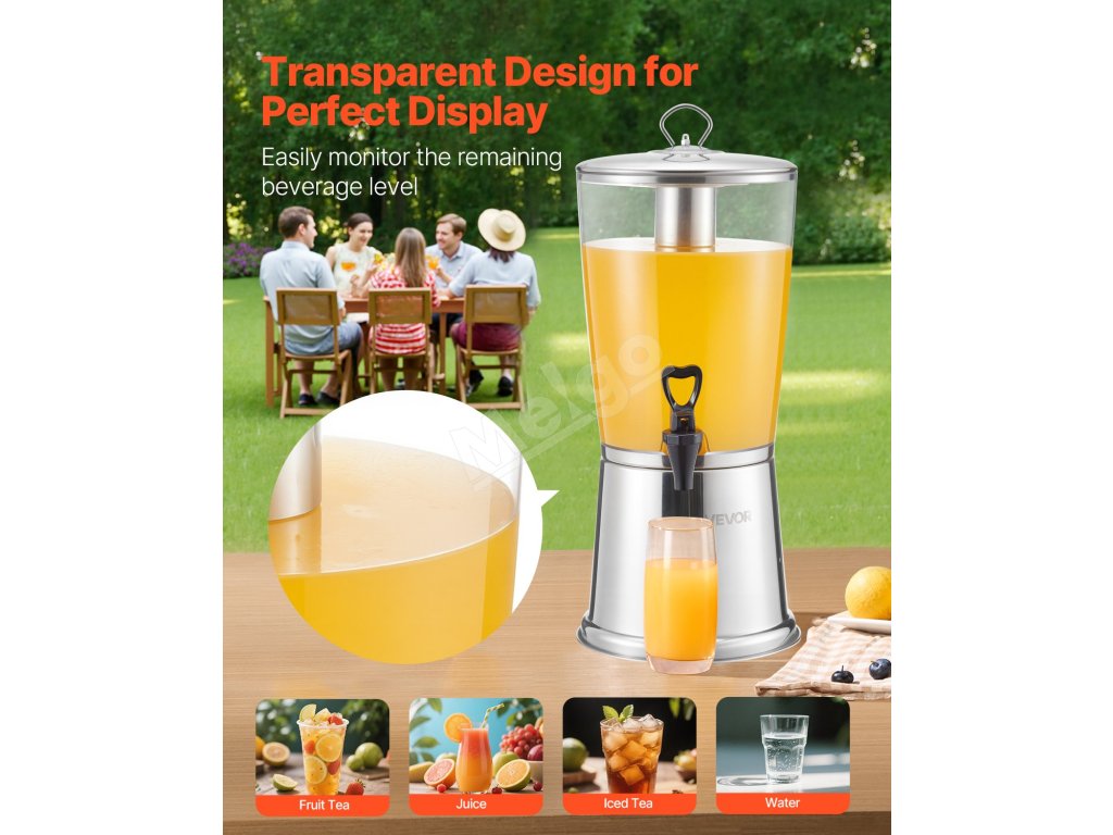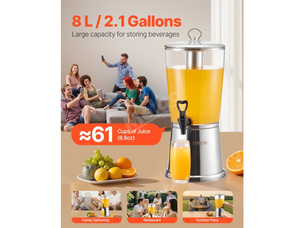 Tento nápojový automat s kapacitou 8 l / 2,1 galónov zabezpečuje nepretržitý prísun nápojov, čím znižuje potrebu častého dopĺňania, čo je ideálne pre rušné reštaurácie, hotely a večierky.
