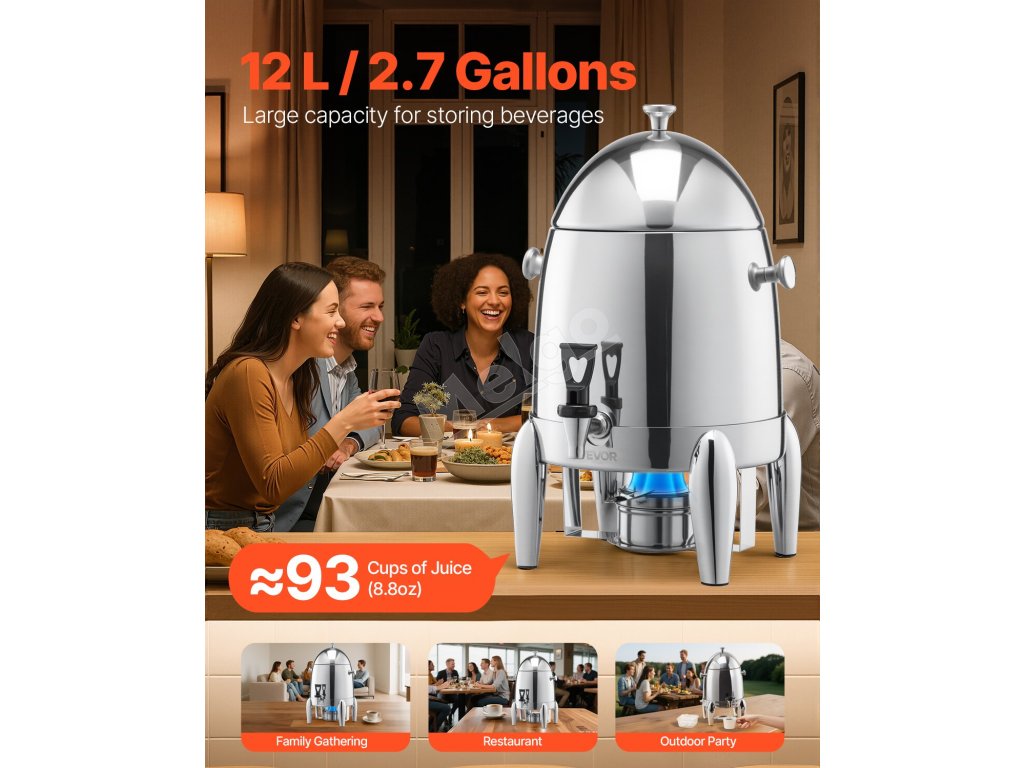 Tento dávkovač horúcich nápojov s objemom 12 l zaručuje nepretržitý prísun nápojov a znižuje potrebu častého dopĺňania, čo je ideálne pre rušné reštaurácie, hotely a večierky.
