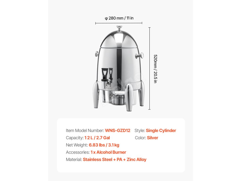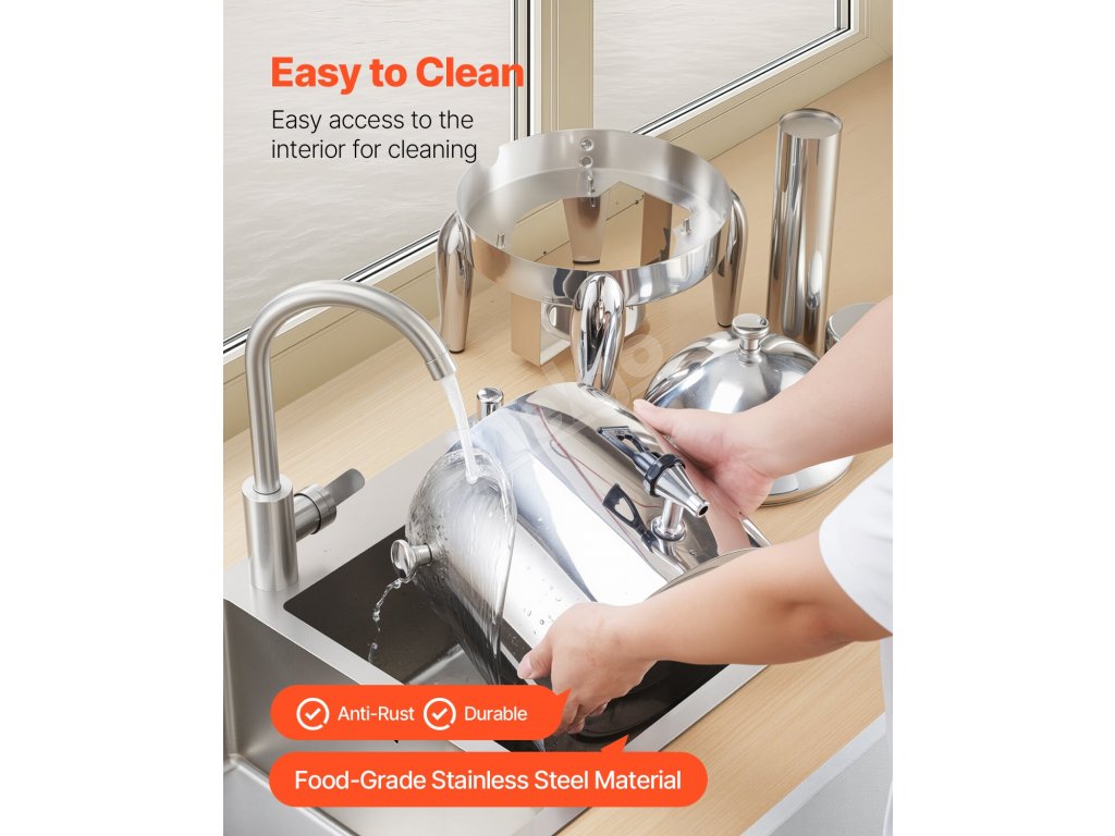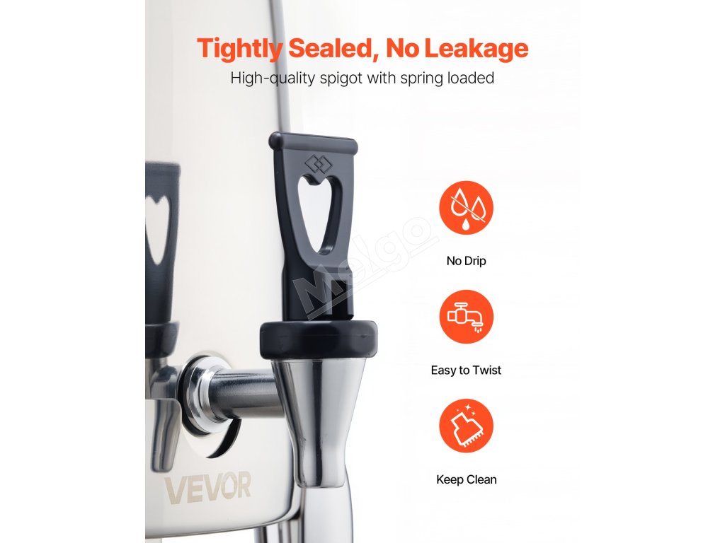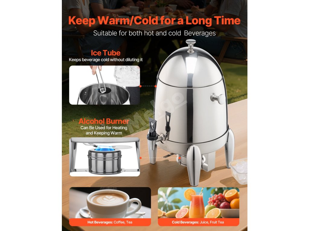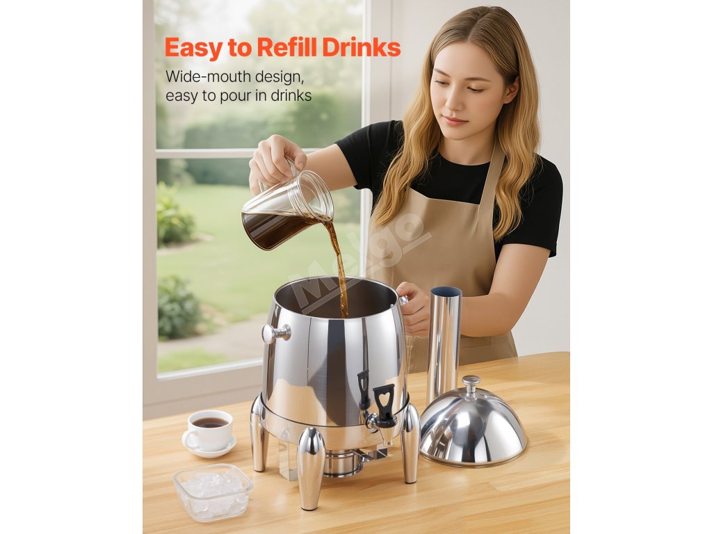 Výdajník horúcich/studených nápojov je vyrobený z potravinárskej nehrdzavejúcej ocele, je odolný voči škvrnám a trvácny. Ideálny na horúcu kávu, ľadový čaj, džús alebo vodu.