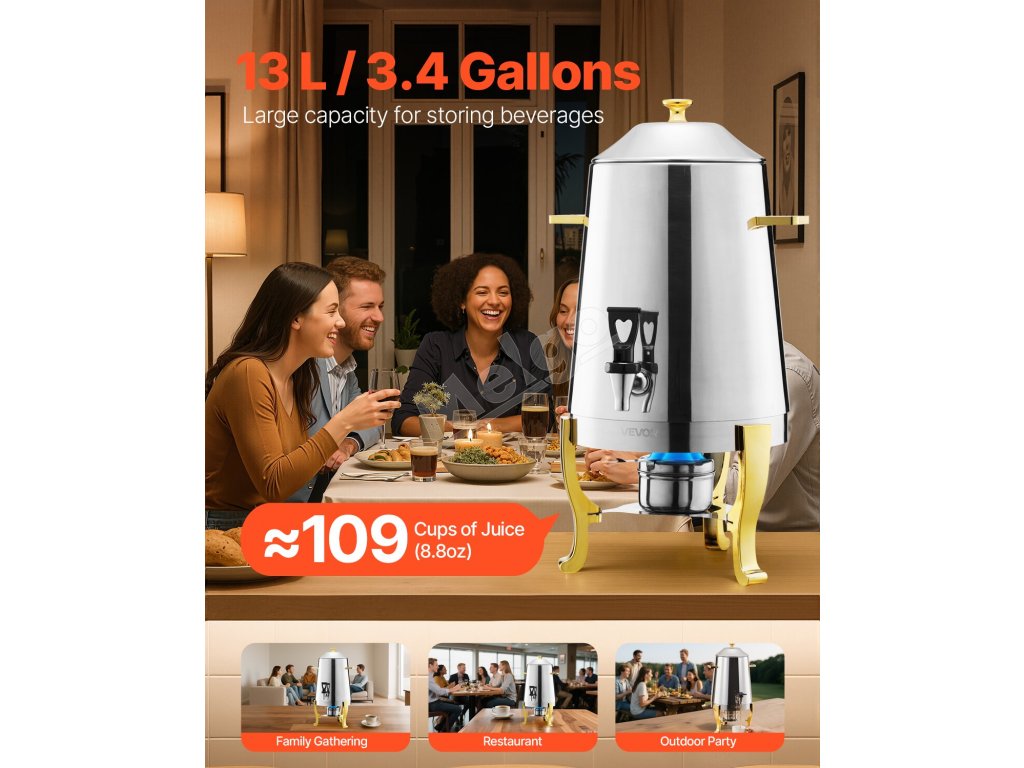 Tento dávkovač horúcich nápojov s objemom 13 l zaručuje nepretržitý prísun nápojov, čím znižuje potrebu častého dopĺňania, čo je ideálne pre rušné reštaurácie, hotely a večierky.