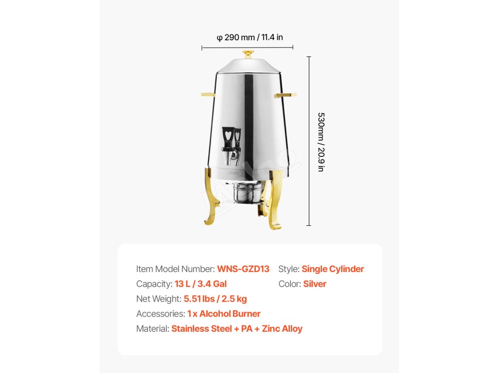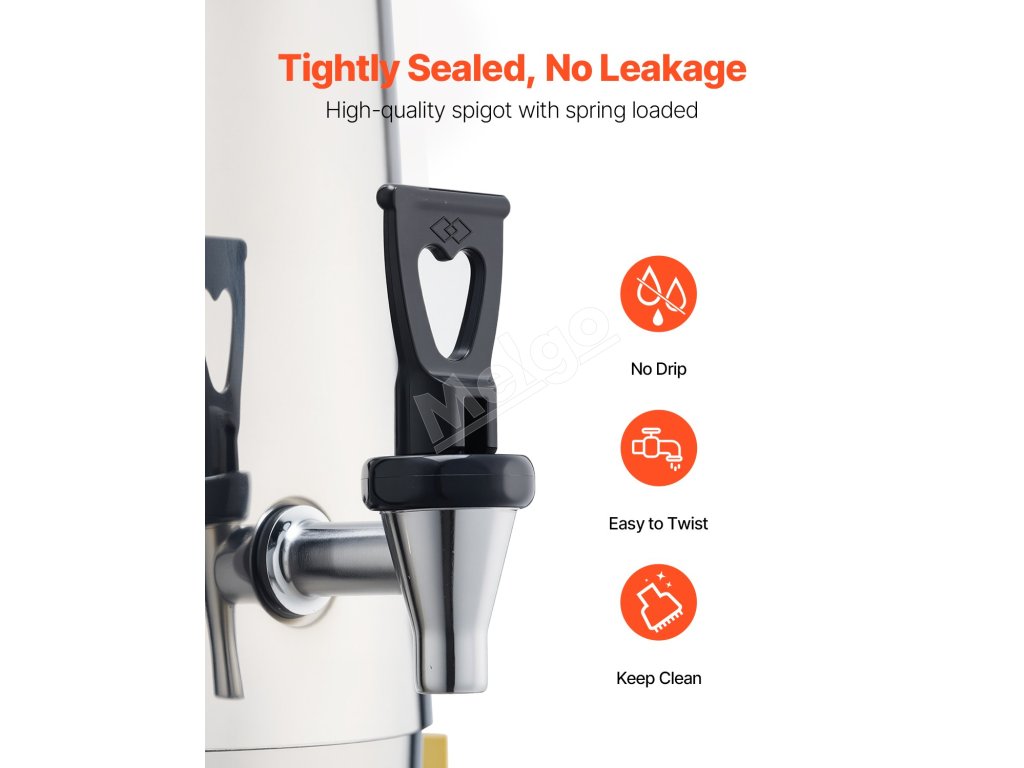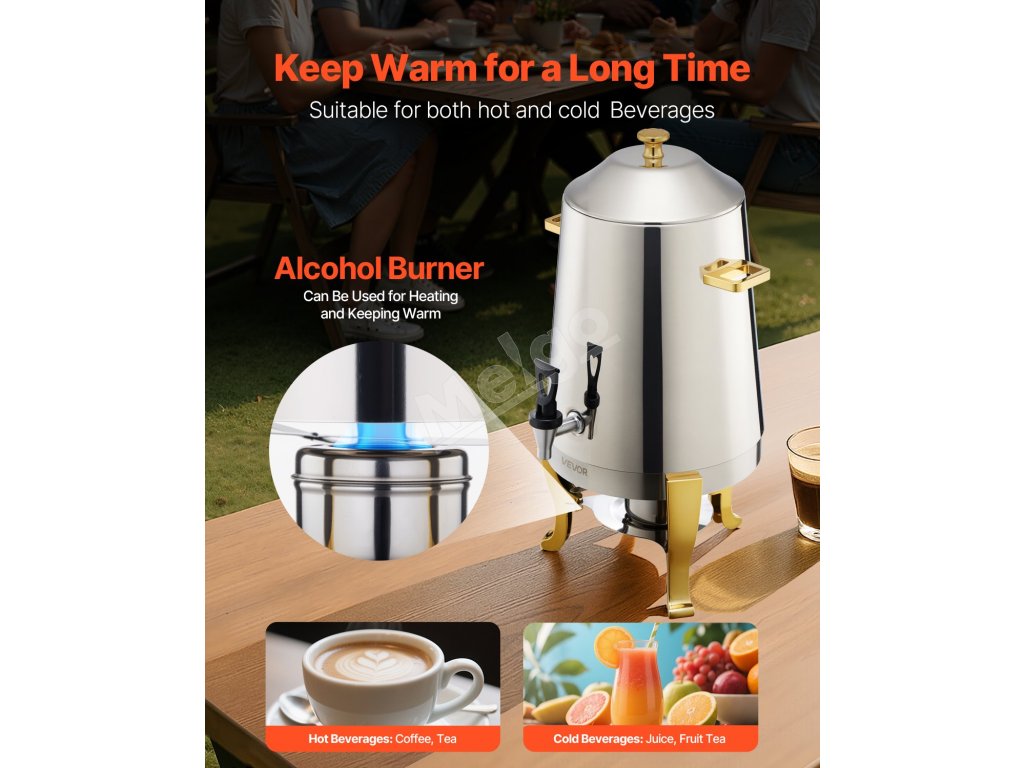 Výdajník horúcich/studených nápojov je vyrobený z potravinárskej nehrdzavejúcej ocele, je odolný voči škvrnám a trvácny. Ideálny na horúcu kávu, ľadový čaj, džús alebo vodu.