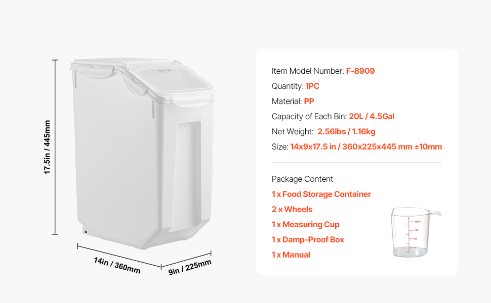 Kontajner na ryžu a krmivo 4.5Gallon/20L, na kolieskach, vzduchotesný