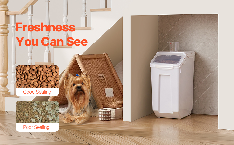 Zásobník na psie krmivo je vyrobený z netoxických materiálov bez obsahu BPA, ktoré sú vhodné na použitie v potravinárstve. Je odolný a ľahko sa čistí.